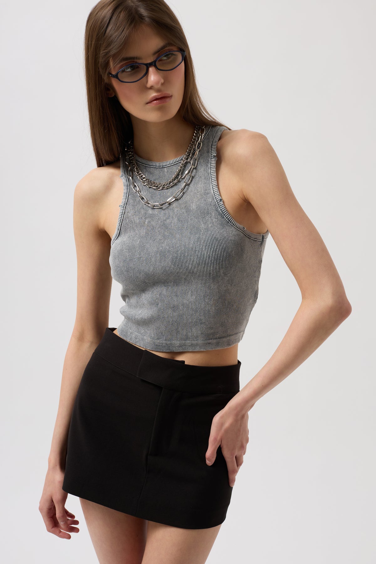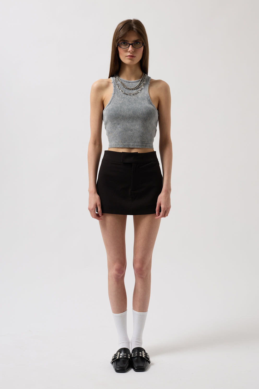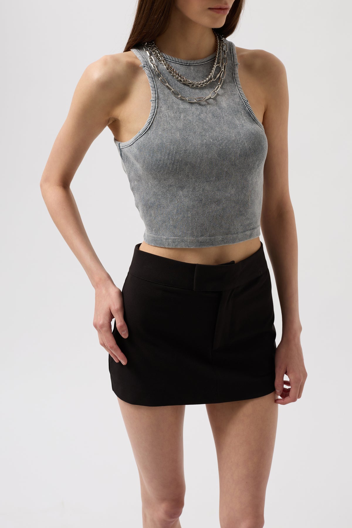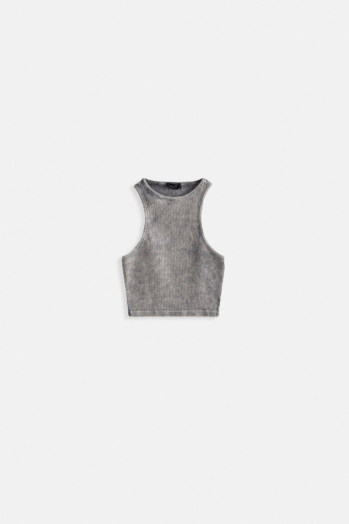 Wash Effect, Cotton Fabric, Swimmer Crop Blouse