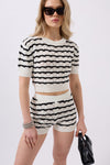 Triko Örgü, Beli Lastikli, Kontrast Desenli, Mini Şort