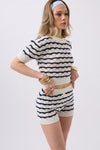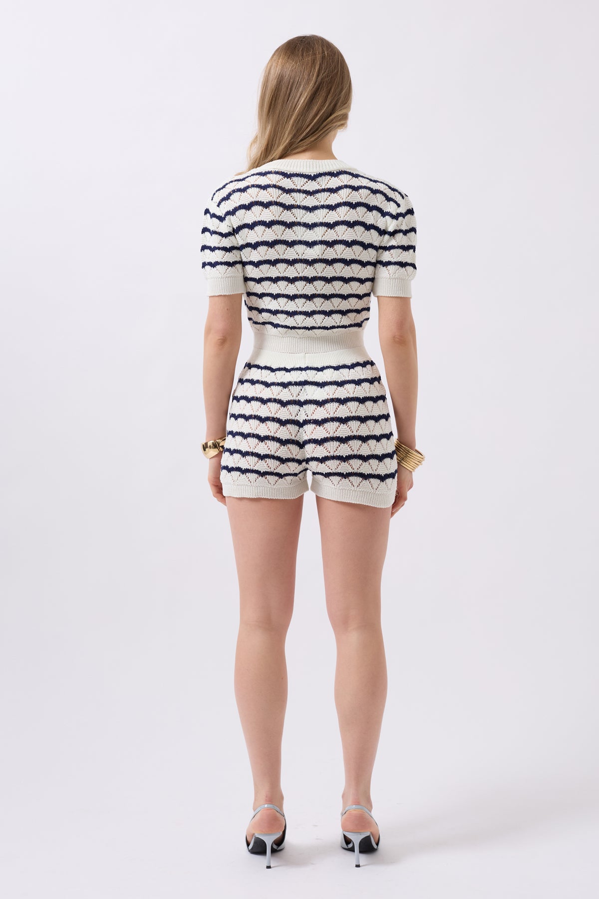 Ajurlu Örgü Detay Lacivert Beyaz Şort