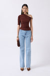 Asimetrik Kesim, Aksesuar Detaylı, Dar Kalıp, Likralı Ve Esnek Kumaşlı Bluz