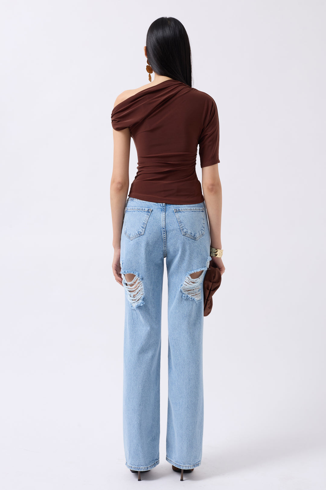 Aksesuar Detay Cutout Kahverengi Bluz