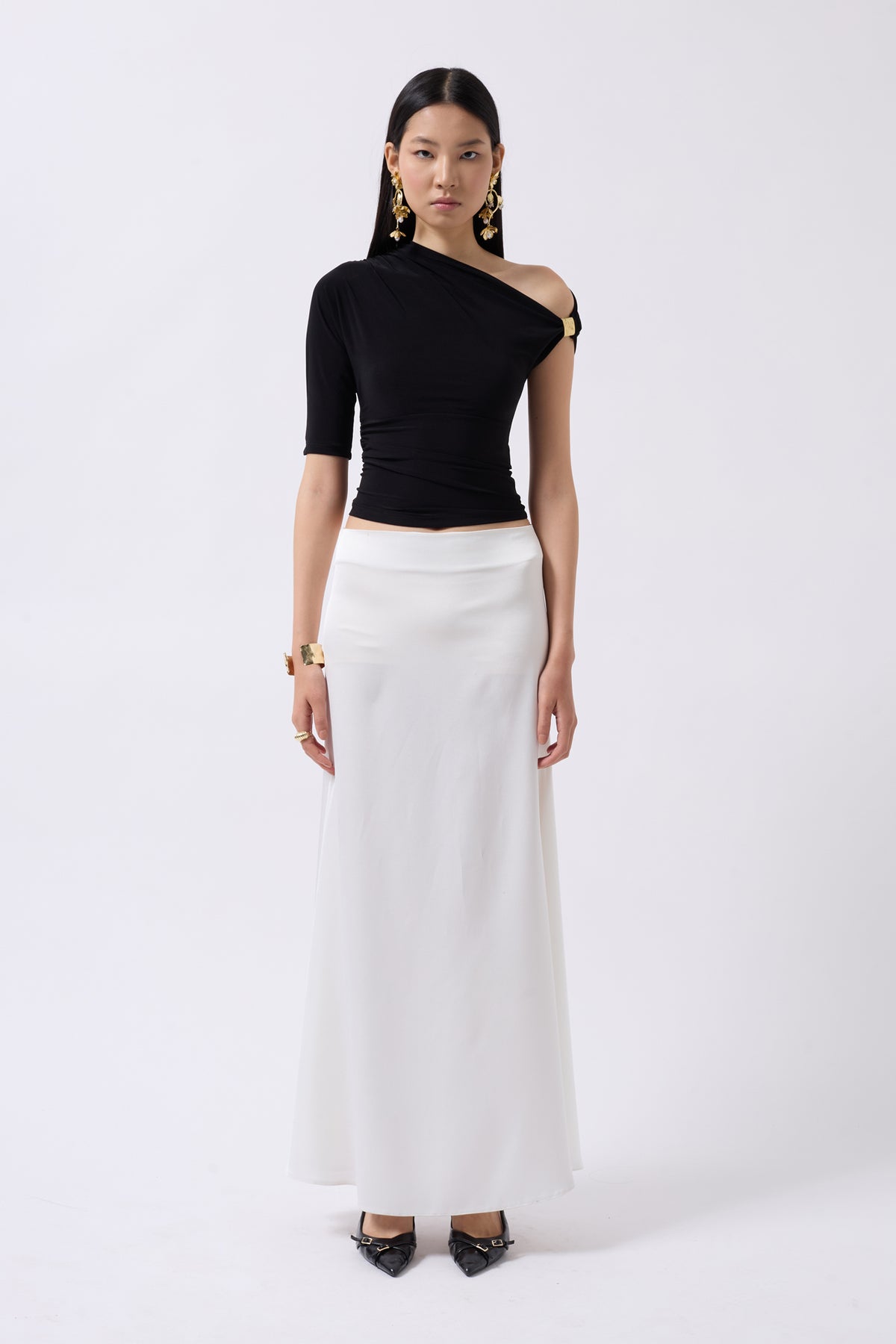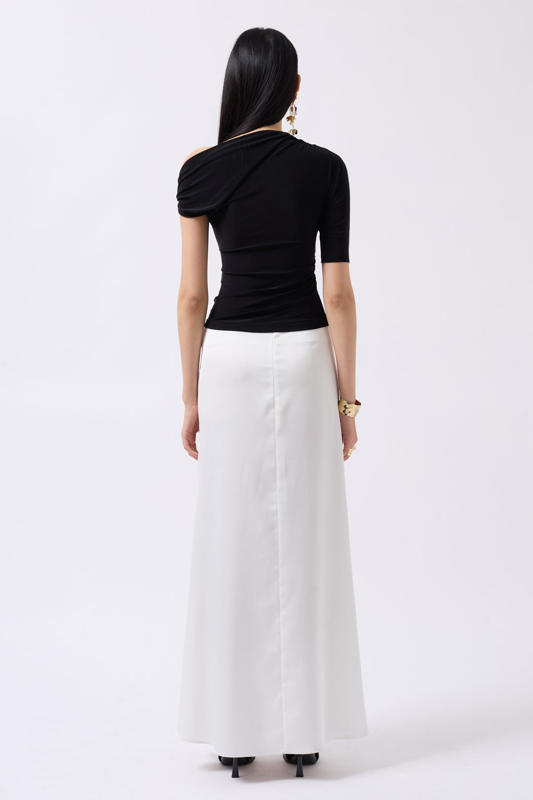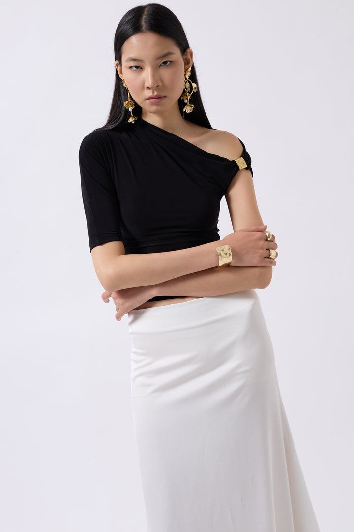 Asimetrik Kesim, Aksesuar Detaylı, Dar Kalıp, Likralı Ve Esnek Kumaşlı Bluz