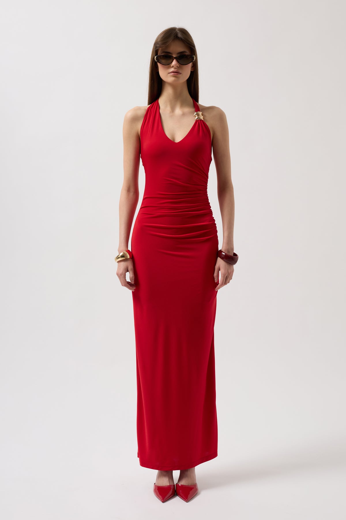 53 kiloyum boyum 169 elbise tam oldu kumasi esnek oldugu icin yorumlara bakarak xs aldim rengi gorundugu gibi askilarindaki altin aksesuarlar cikartilip oyatilabiliyo kizlar tereddut etmeden alin fav🙏🏻🥰