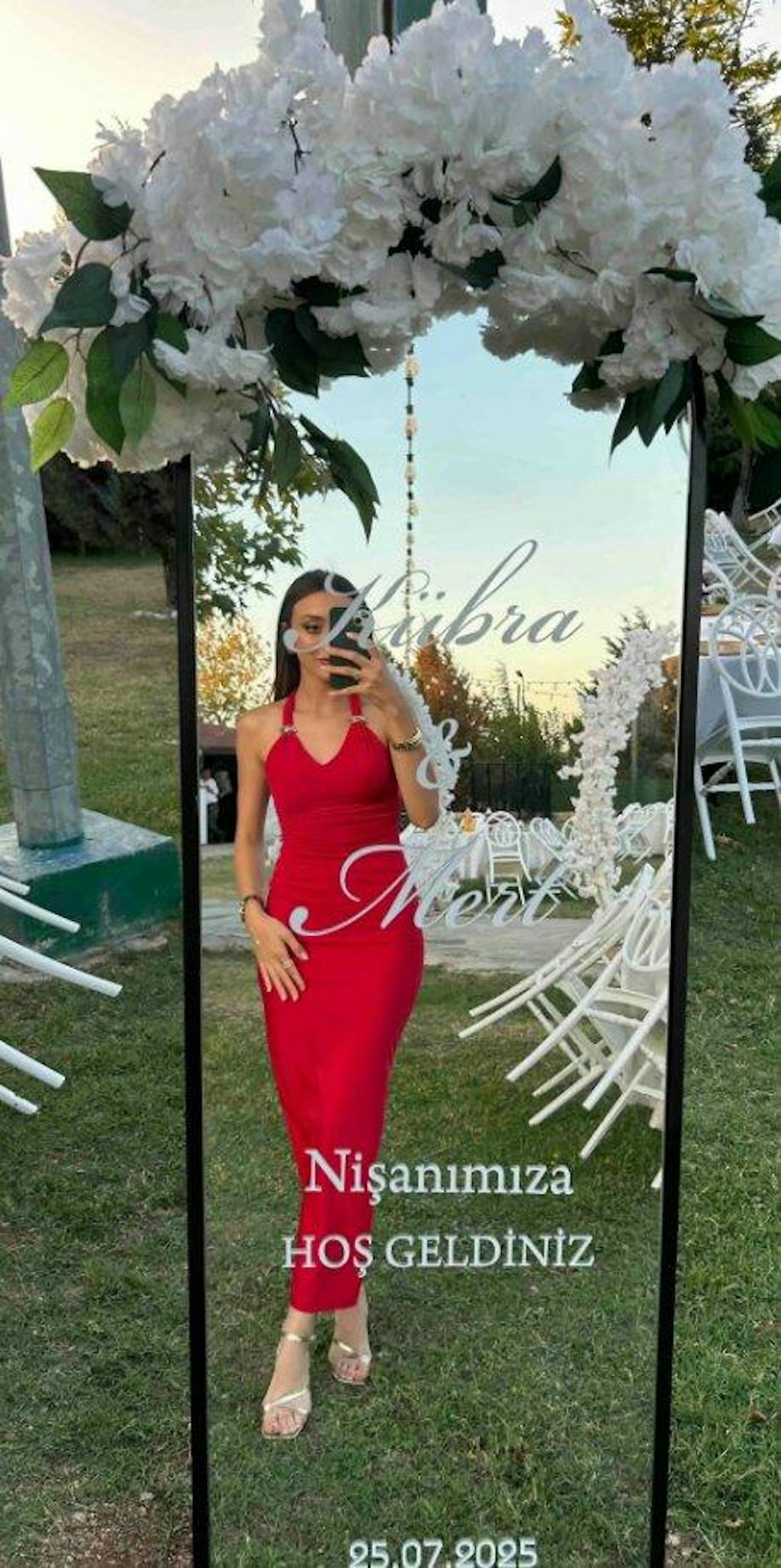 Aksesuar Detay Maxi Kırmızı Elbise