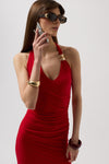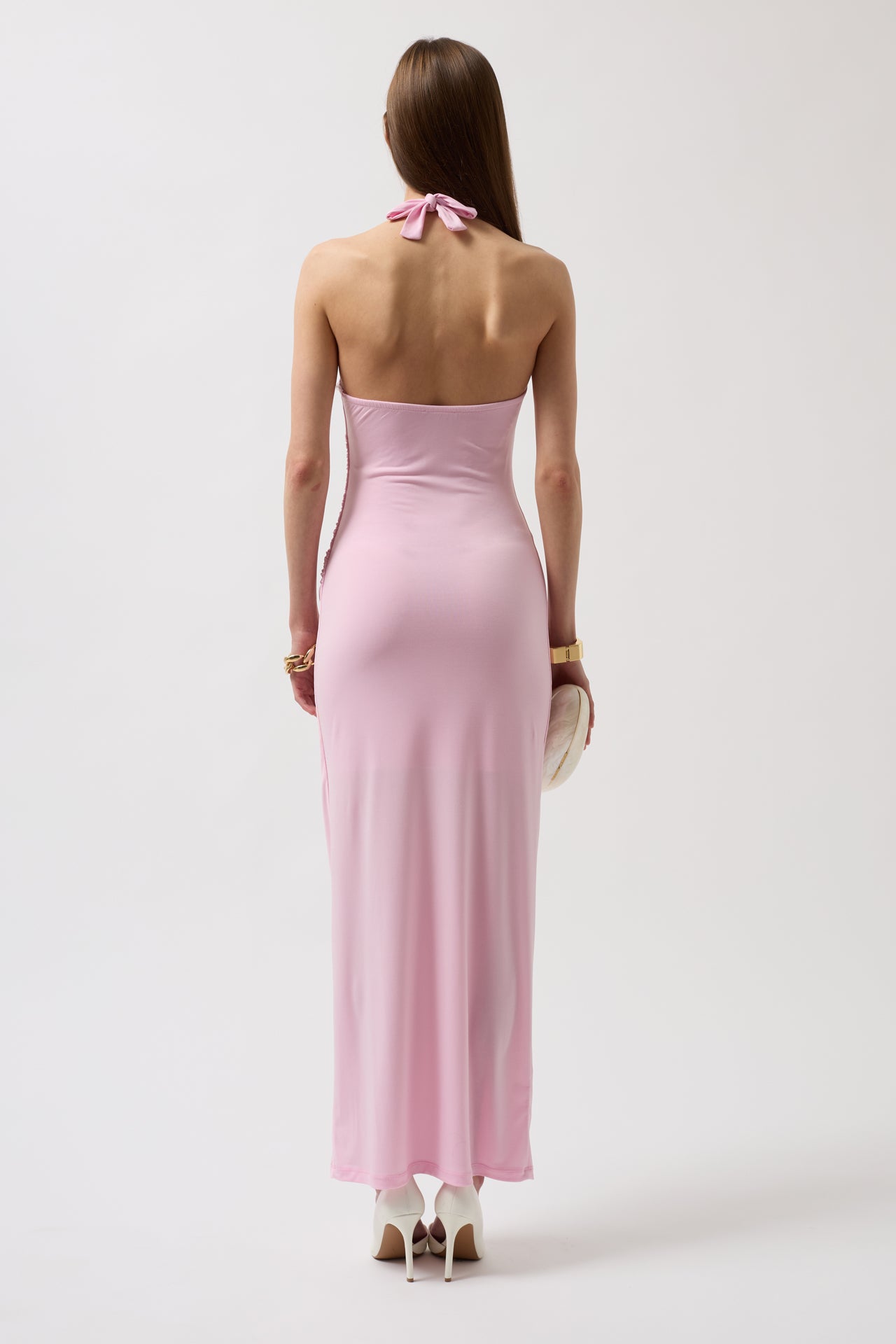 Ayarlanabilir Aksesuar Detaylı, Yarım Astarlı, Boyun Bağlamalı, Likralı Ve Esnek Kumaşlı Uzun Elbise