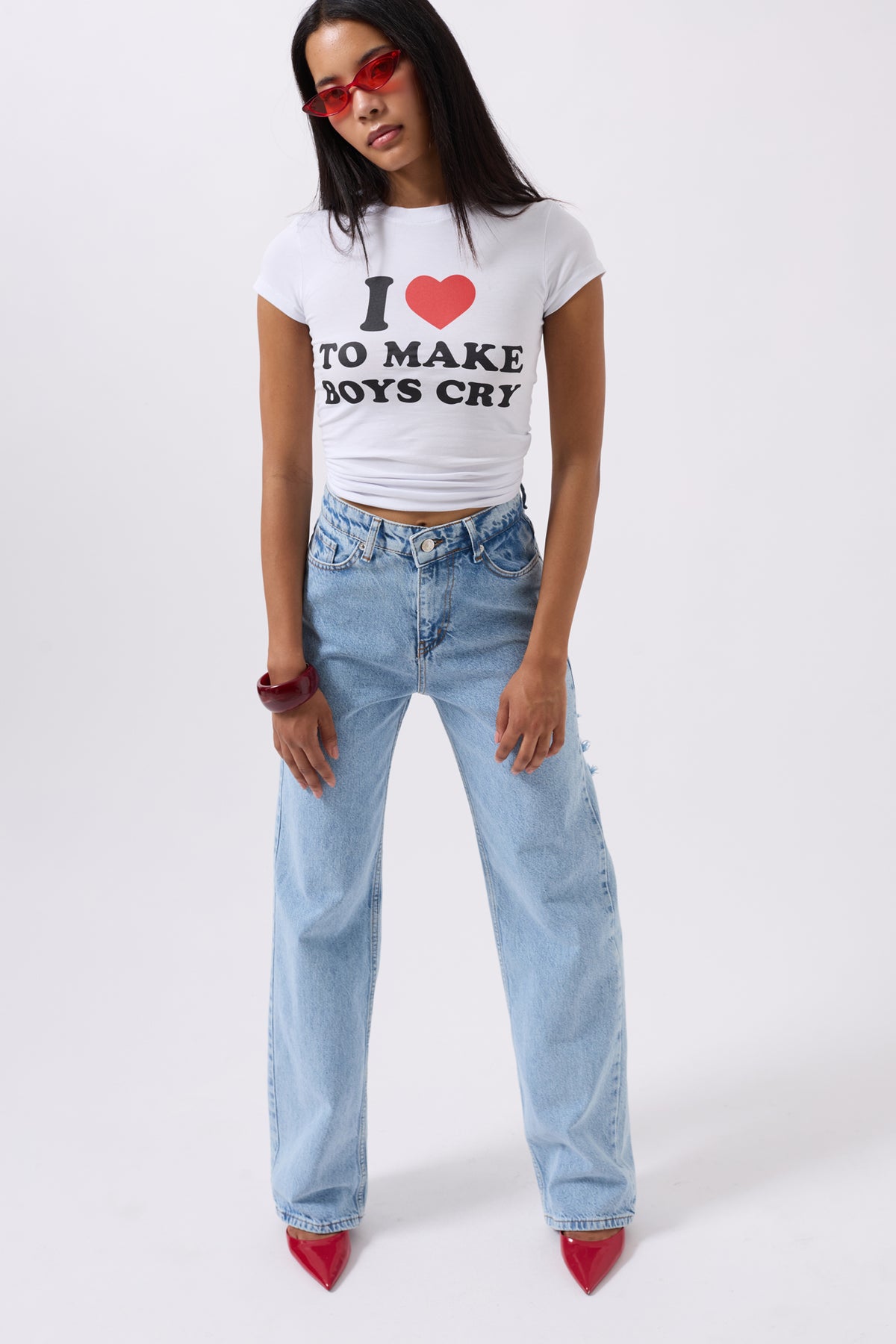Arka Lazer Kesim Bol Paça Mavi Jean