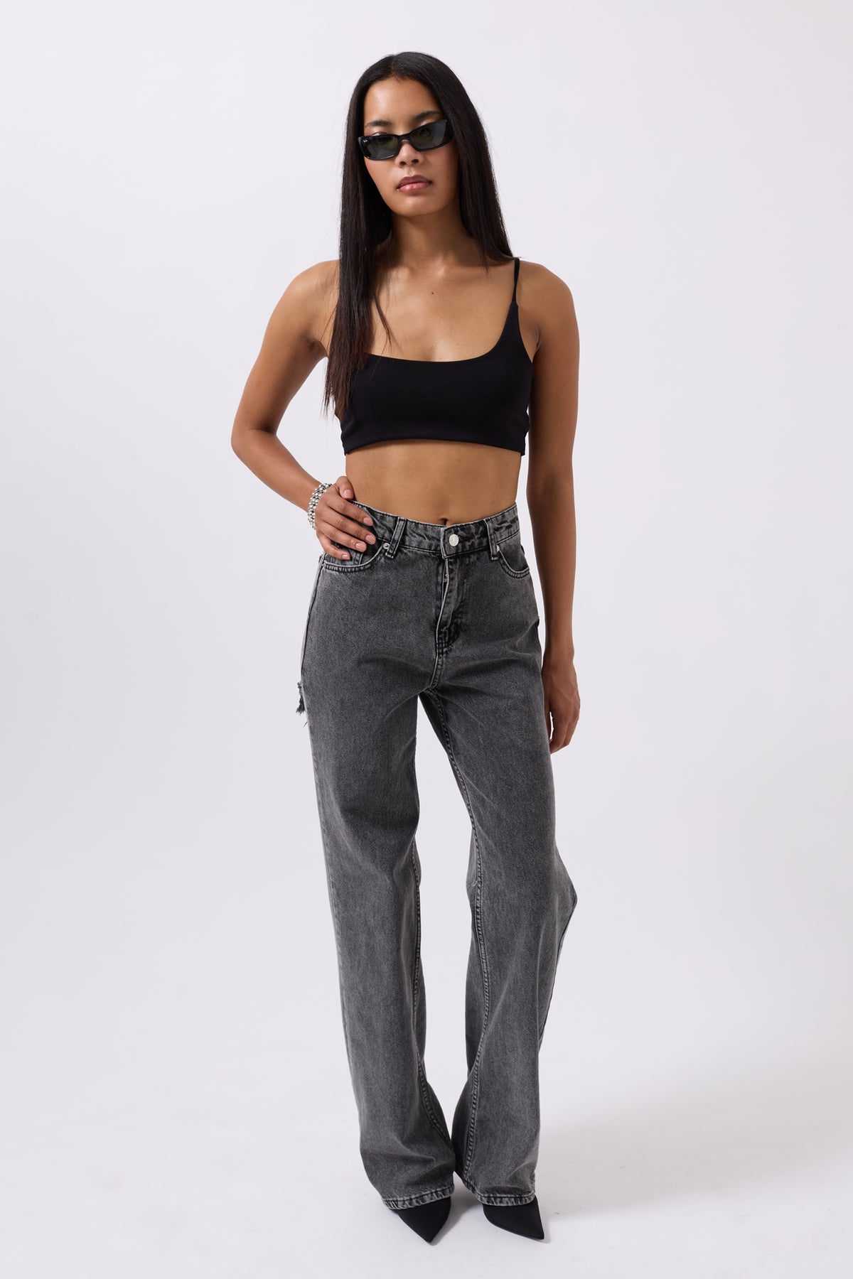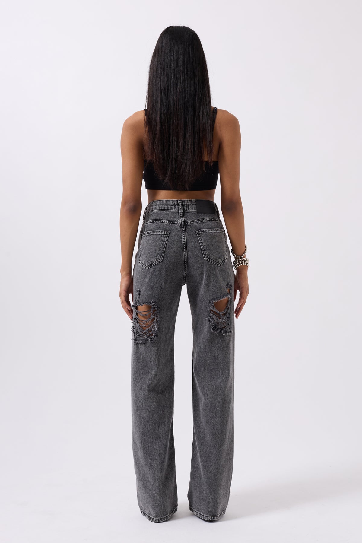 Arka Lazer Kesim Bol Paça Siyah Jean