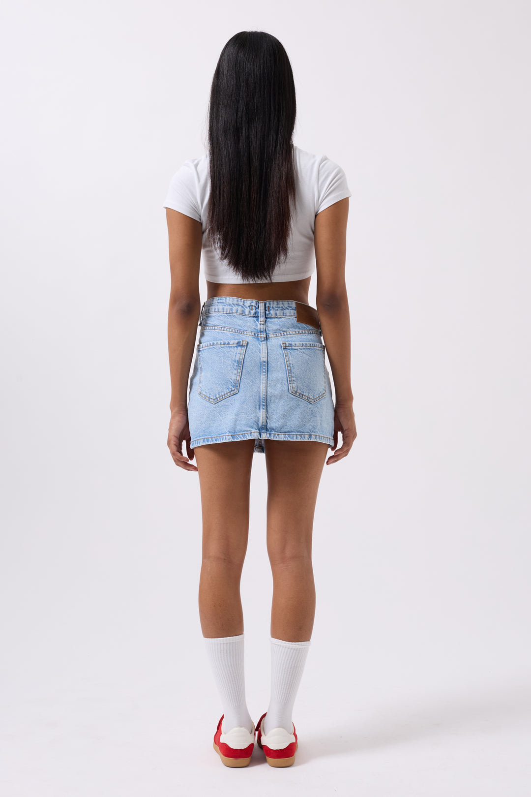Bel Asimetrik Form, Düğmeli Ve Fermuarlı, Dört Cepli, Denim Kumaş Mini Etek