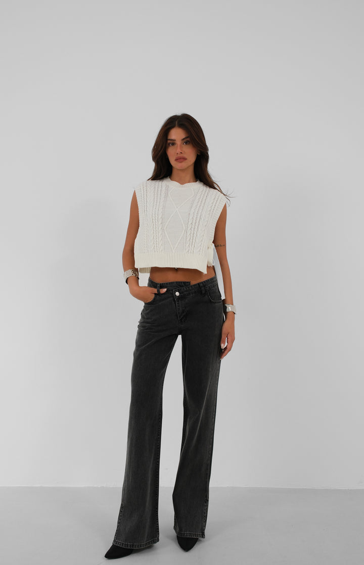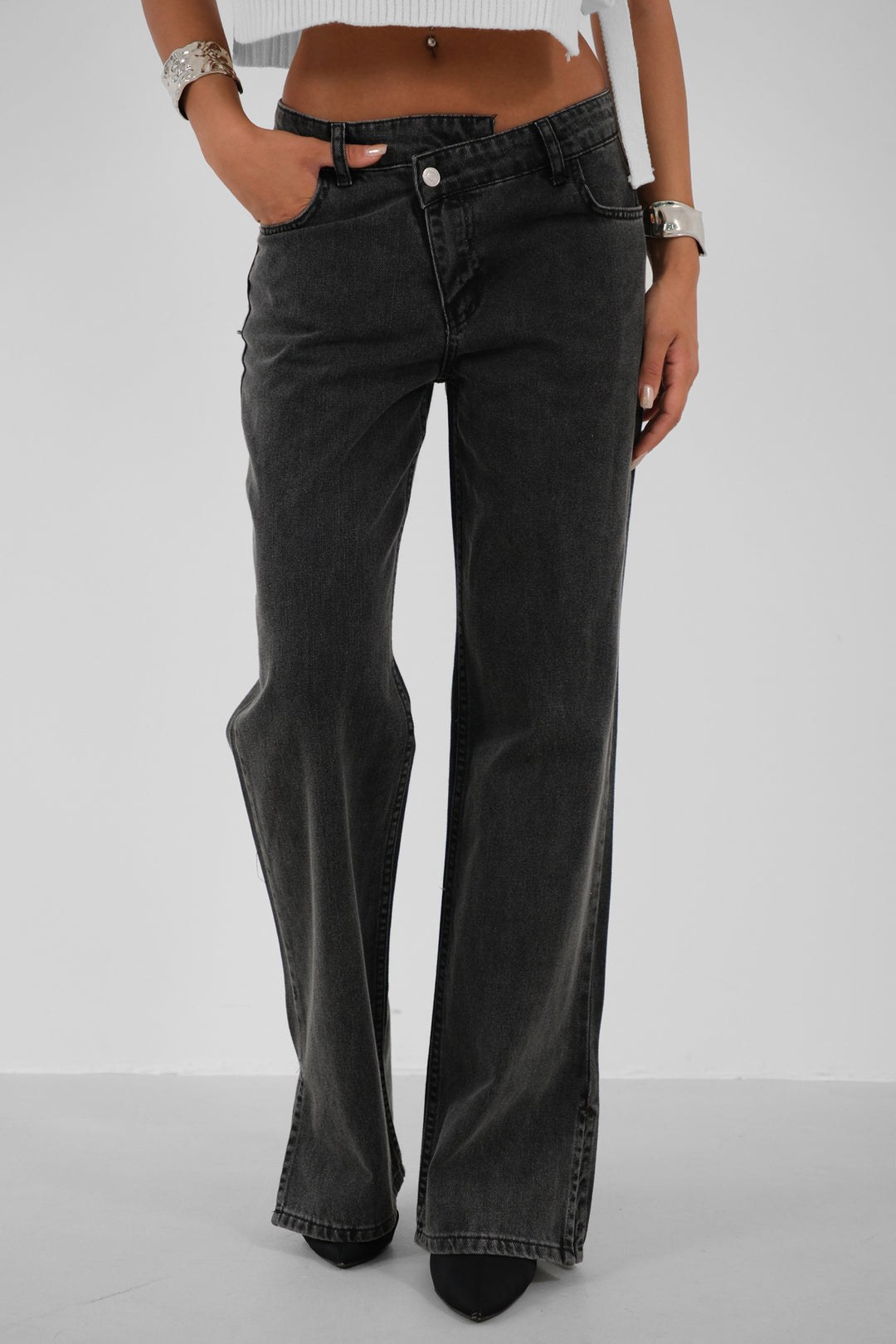 Asimetrik Kemer, Yırtmaçlı Paça Detaylı Jean
