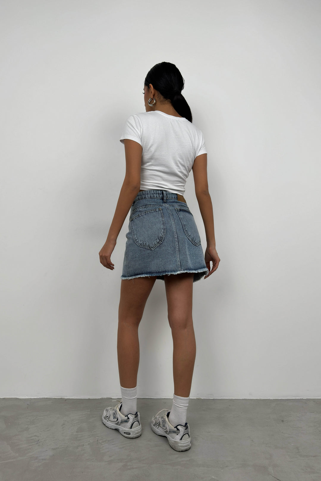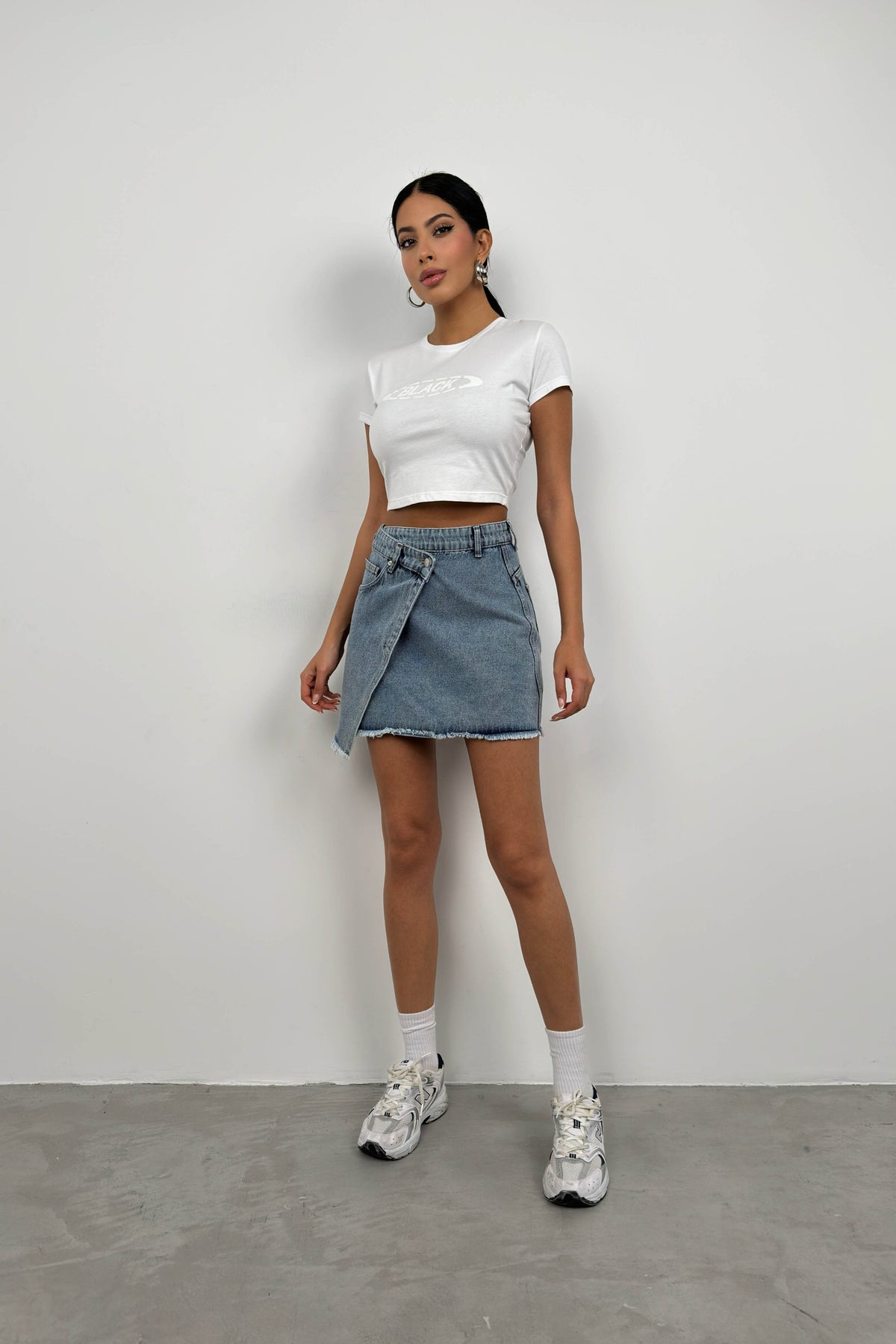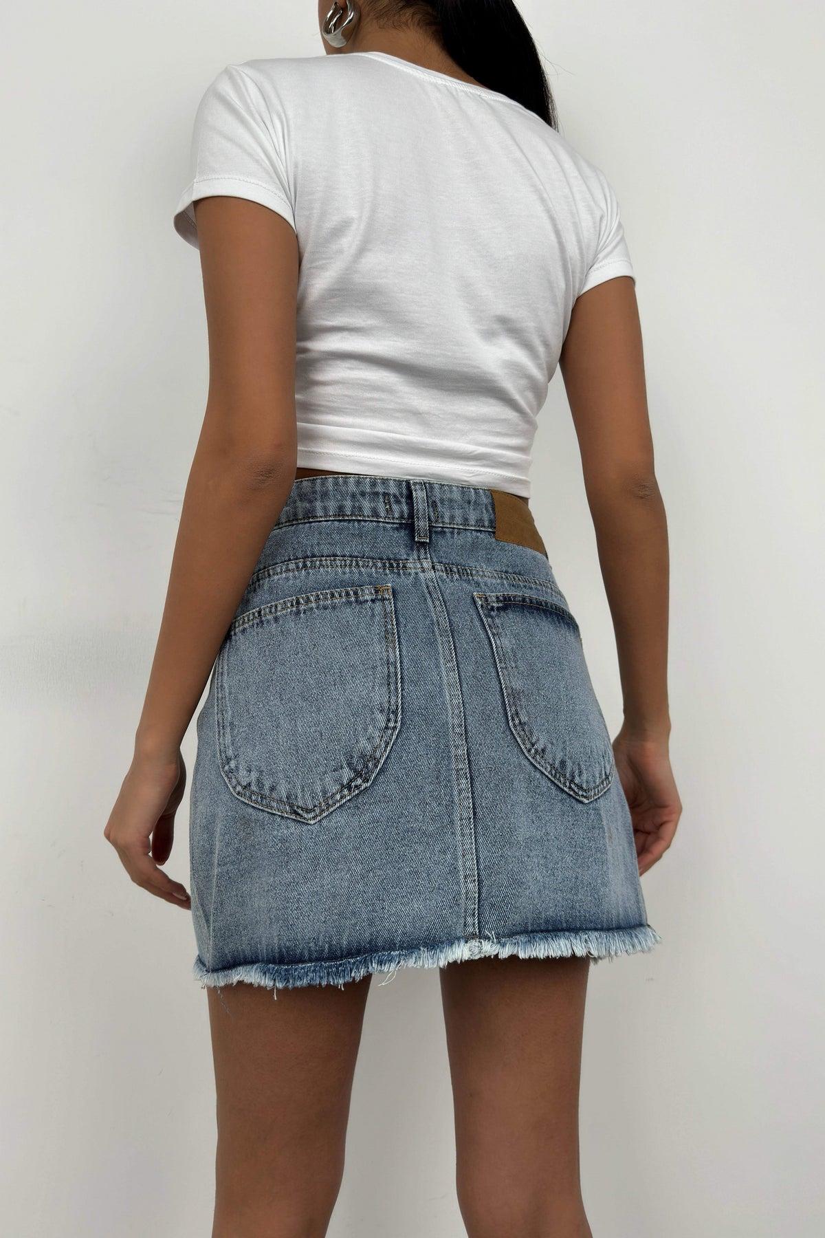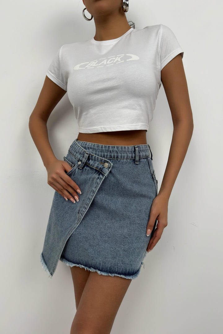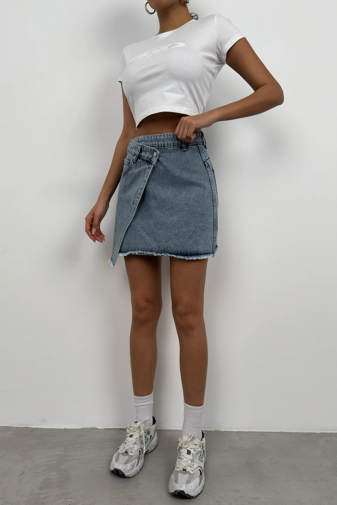 Asimetrik Kesim, Yüksek Bel, Mini Denim Etek