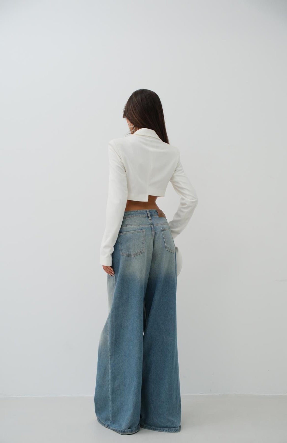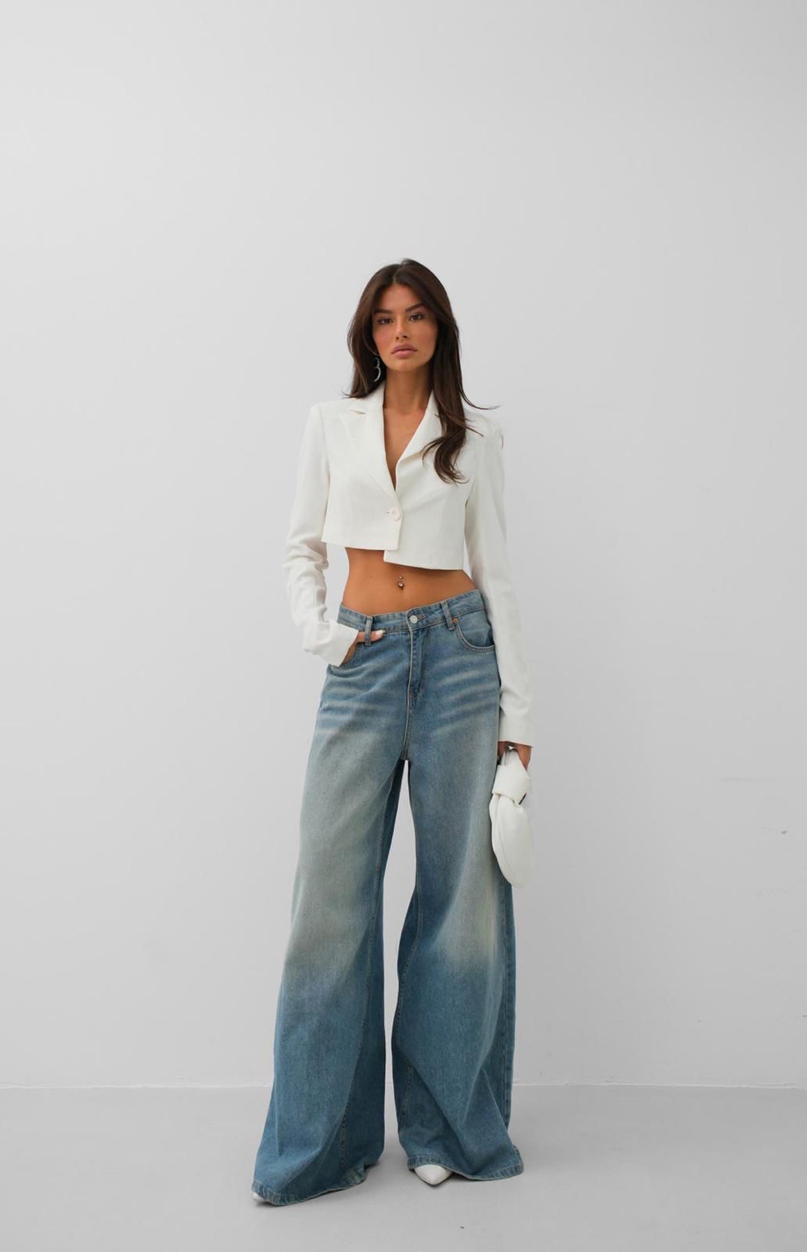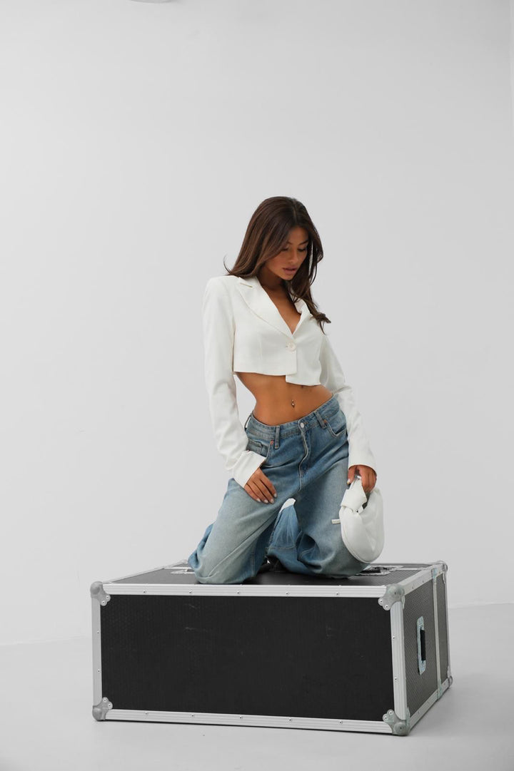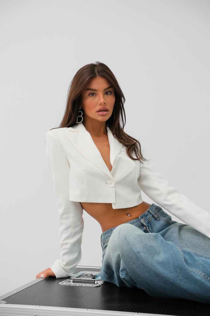 Asimetrik Tek Düğmeli Beyaz Ceket