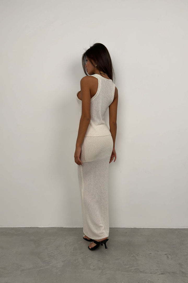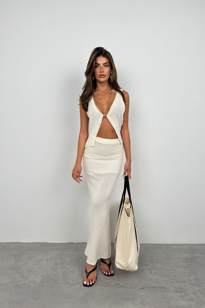 Askılı Dokulu Dekolte Ekru Bluz