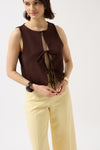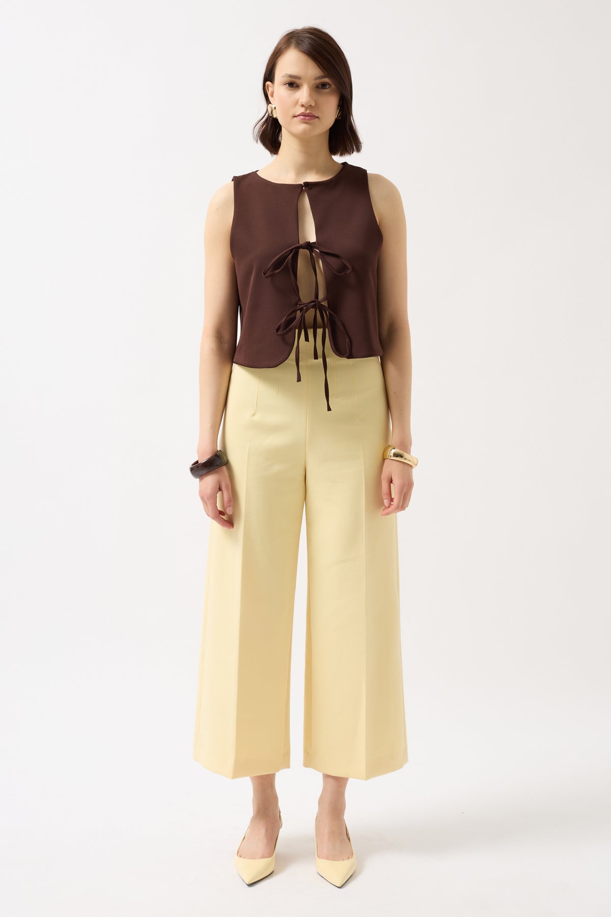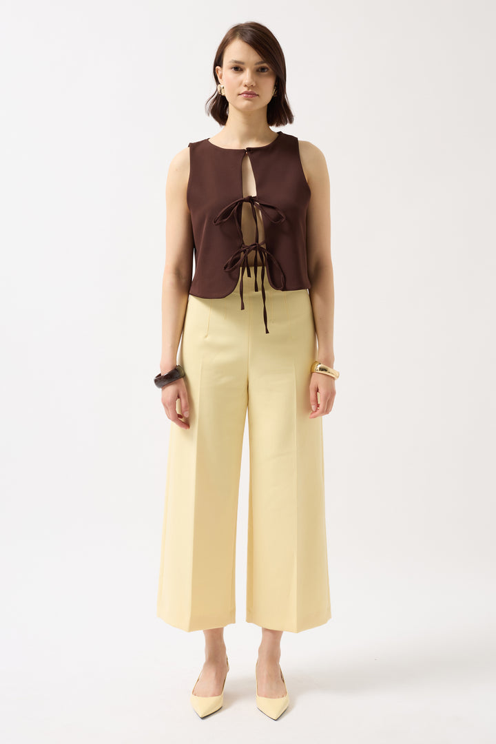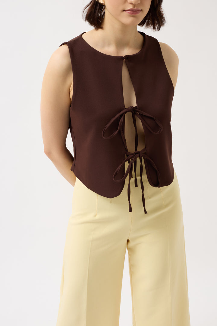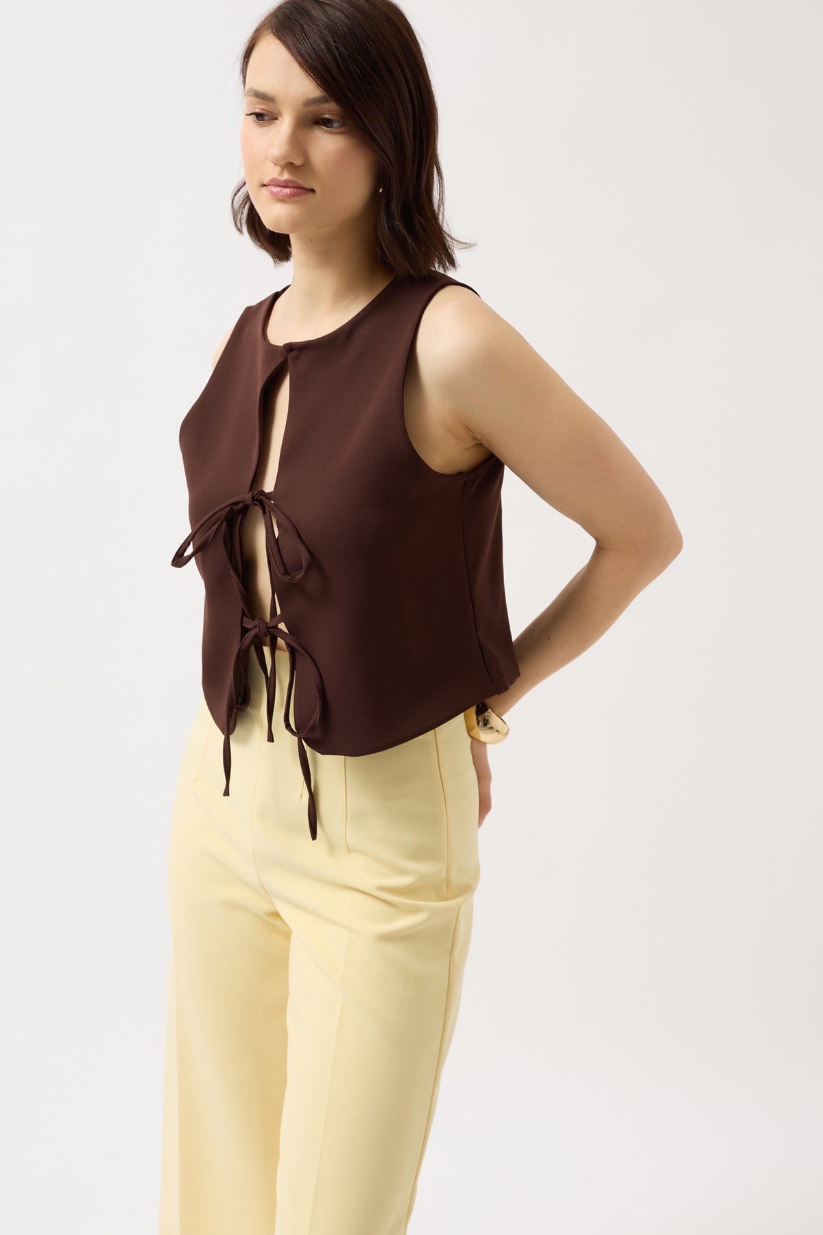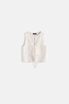 Önü Çift Fiyonk Detaylı, Çift Katlı Astarlı, Yaka Gizli Düğme Detaylı, Yelek Form Bluz