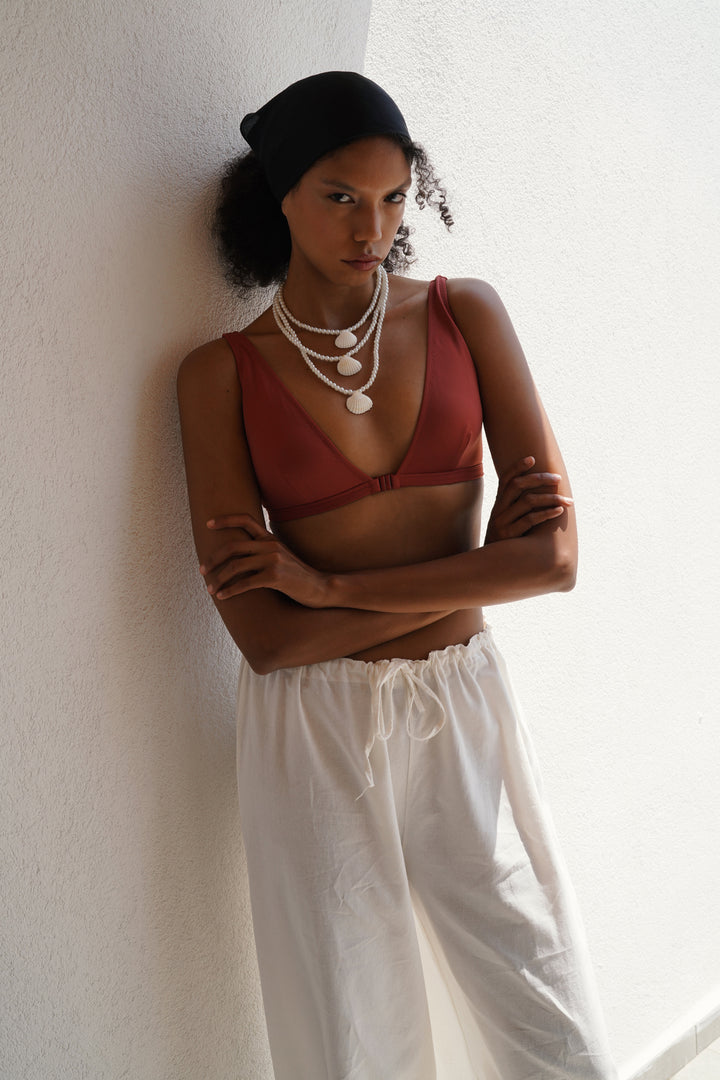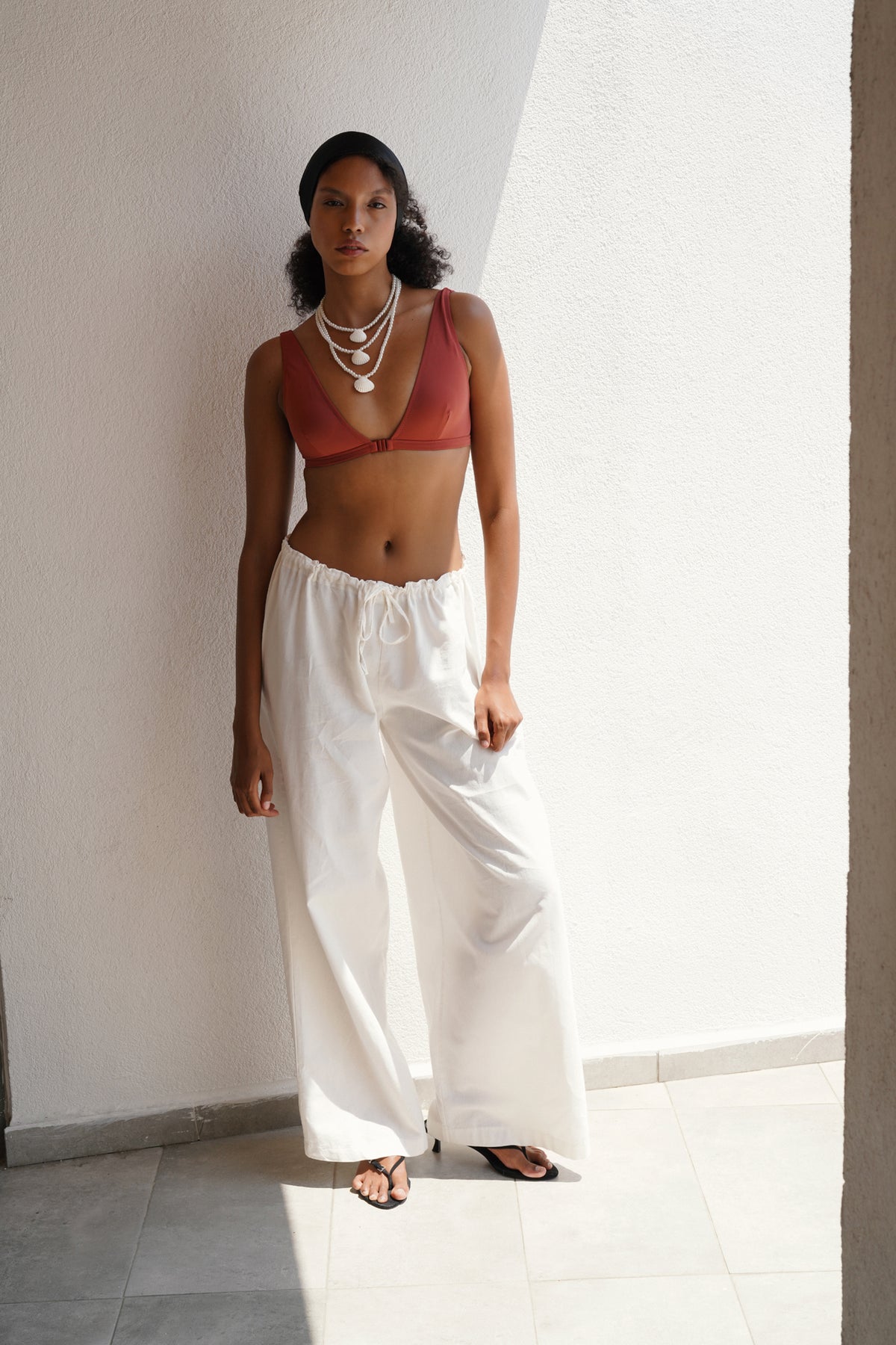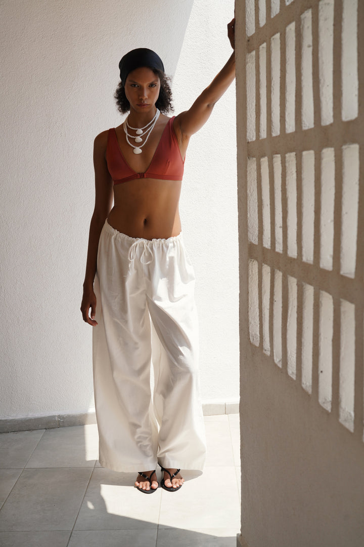 Bağcık Detay Pamuklu Beyaz Pantolon