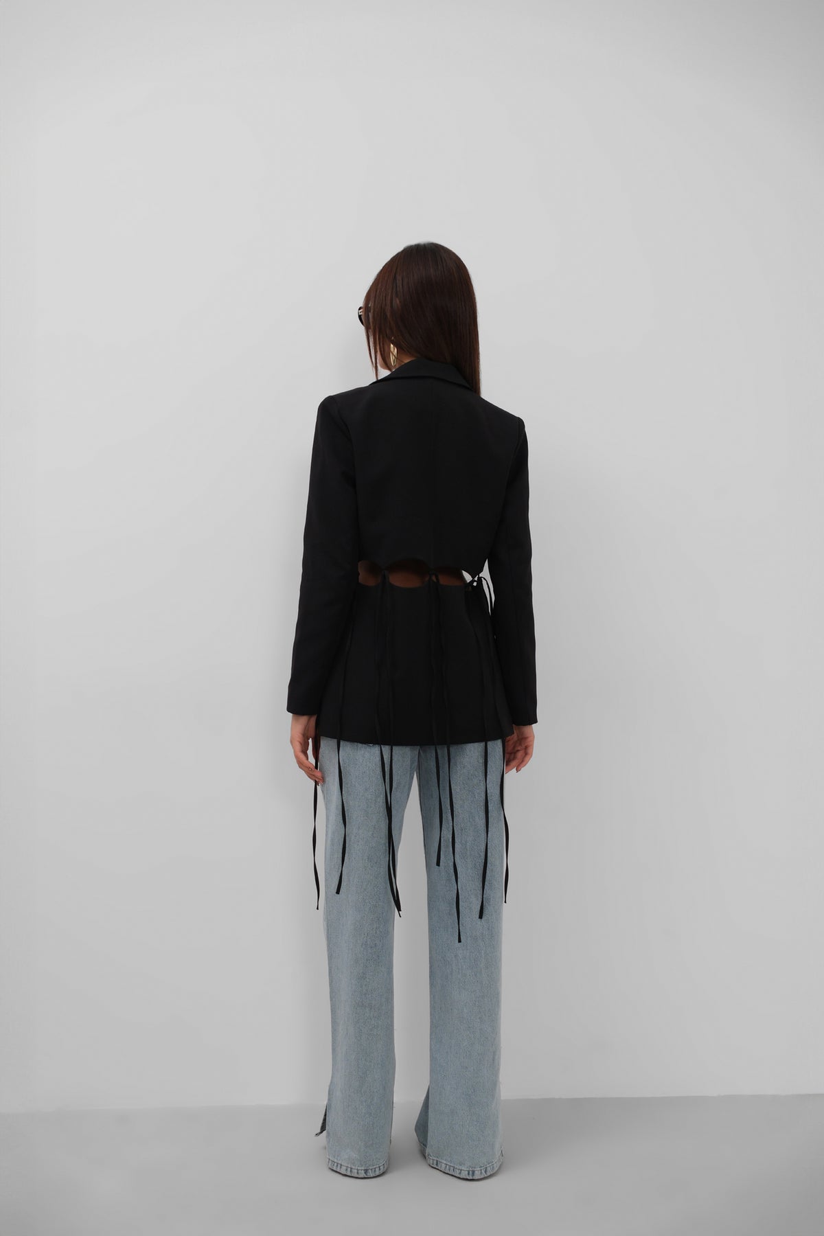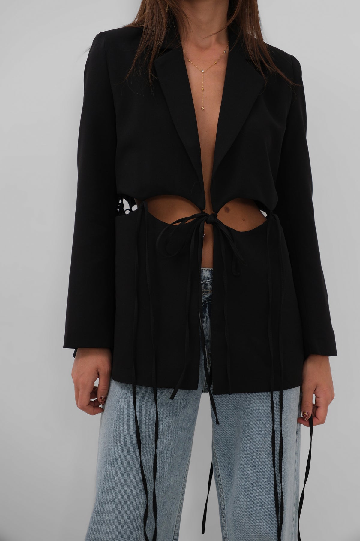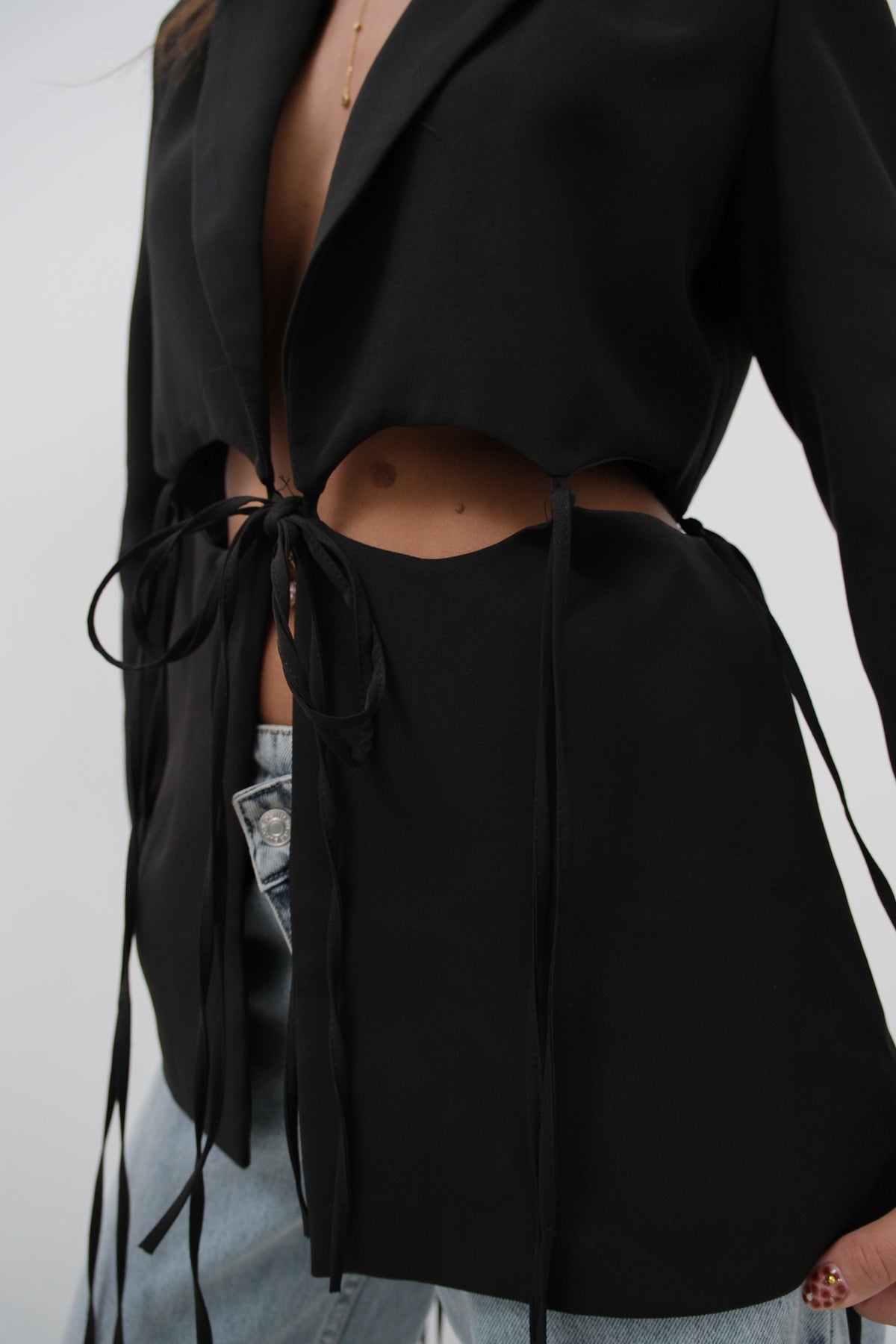 Bağcık Detaylı Tasarım Siyah Ceket