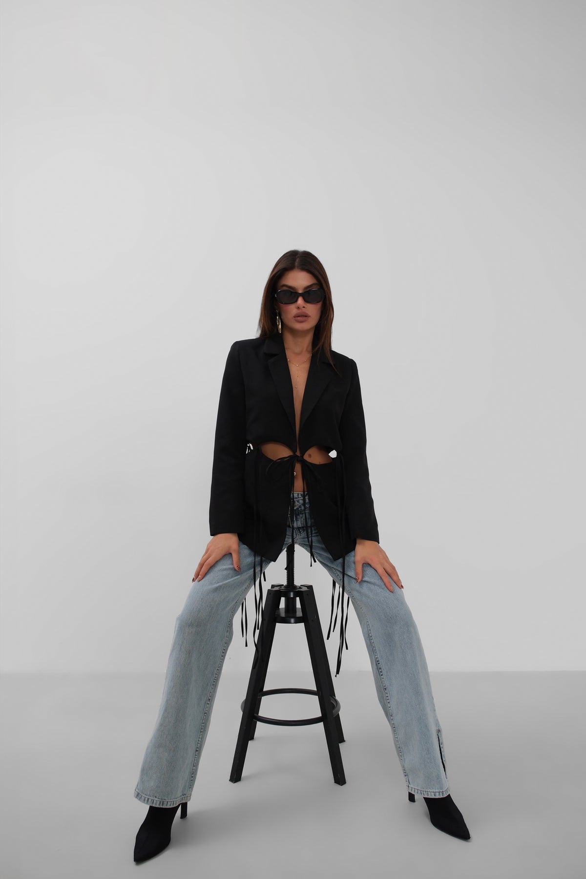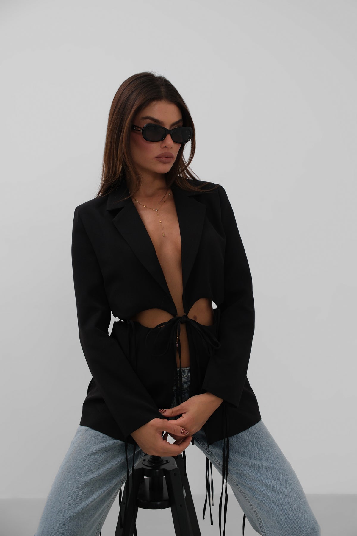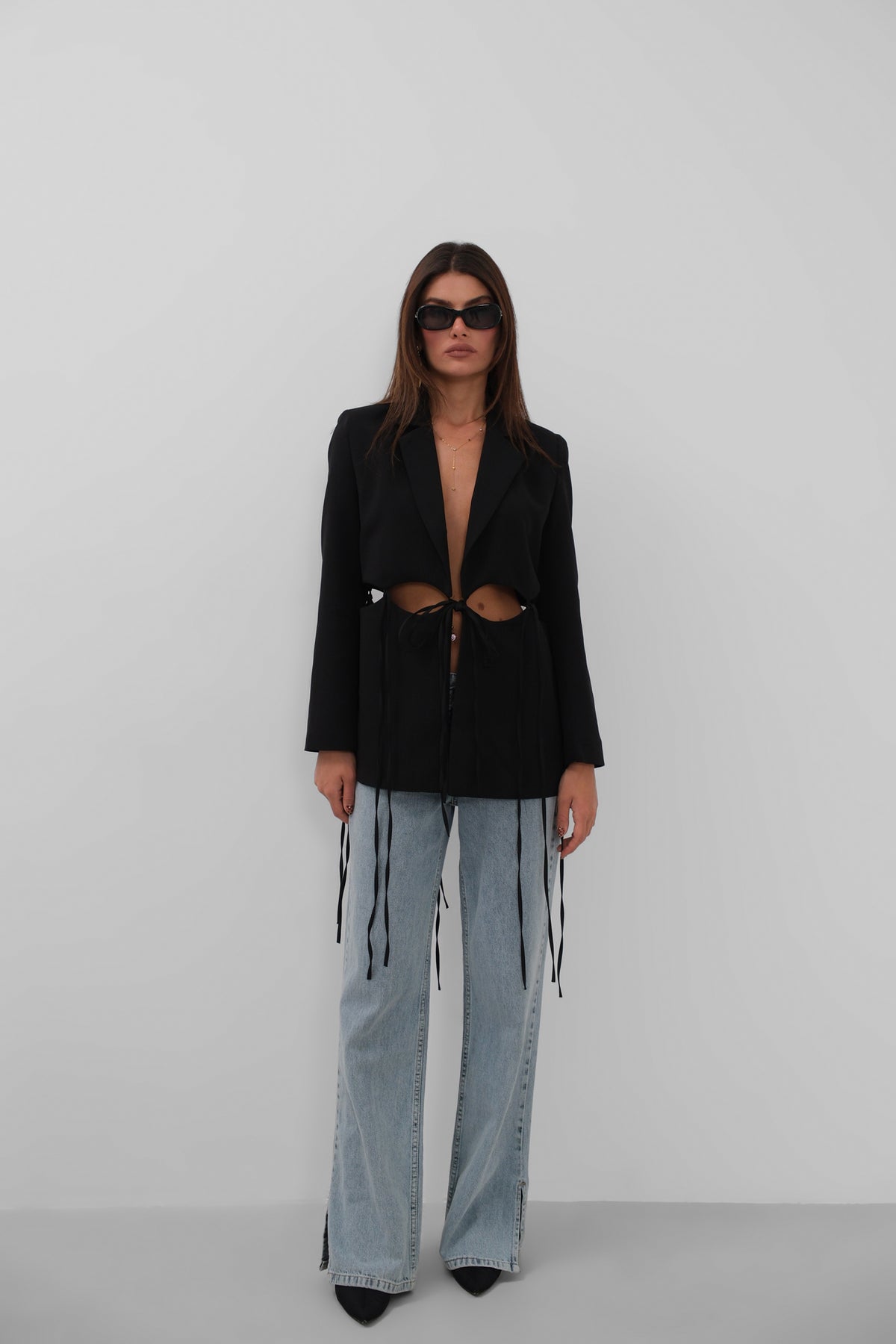 Bağcık Detaylı Tasarım Siyah Ceket