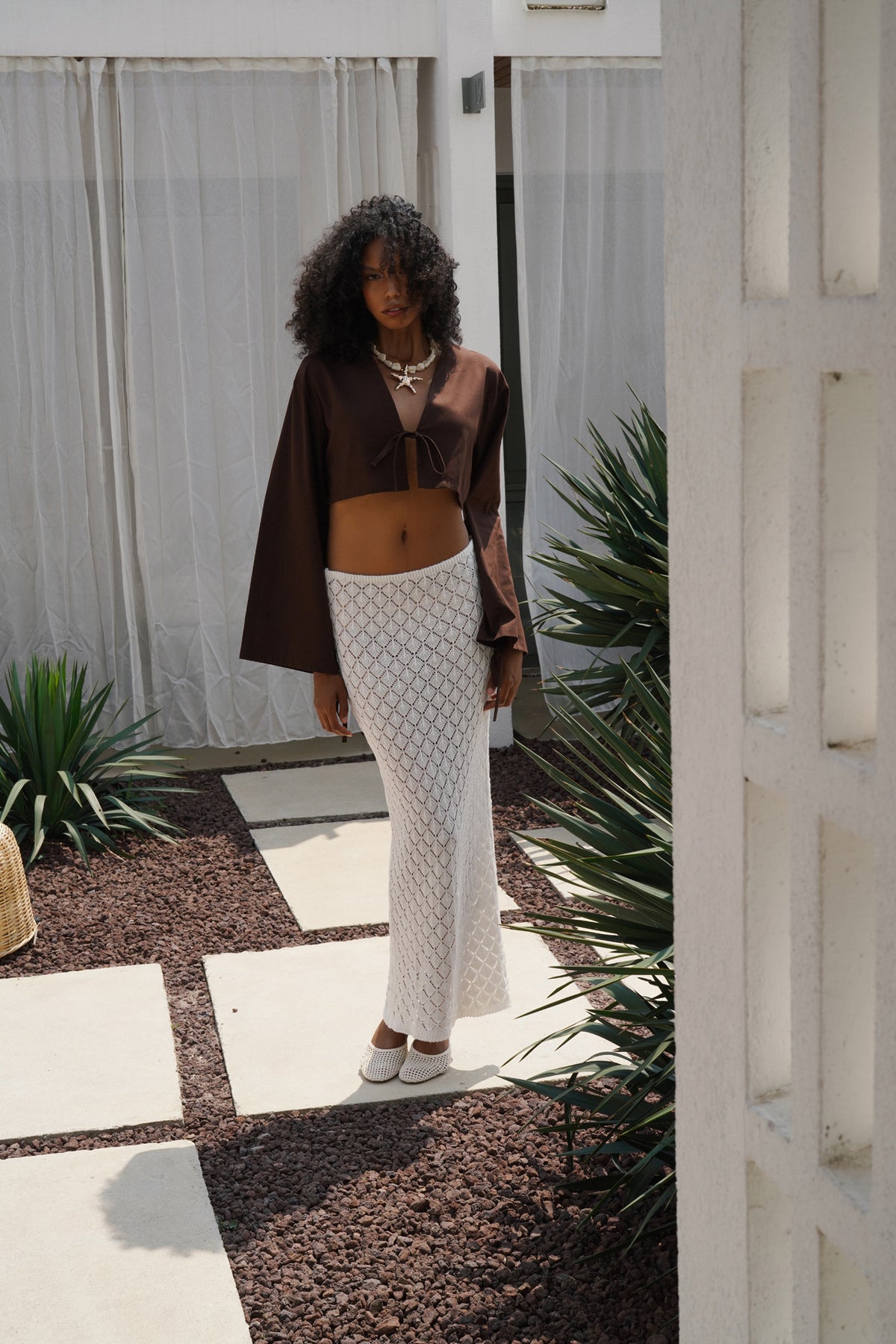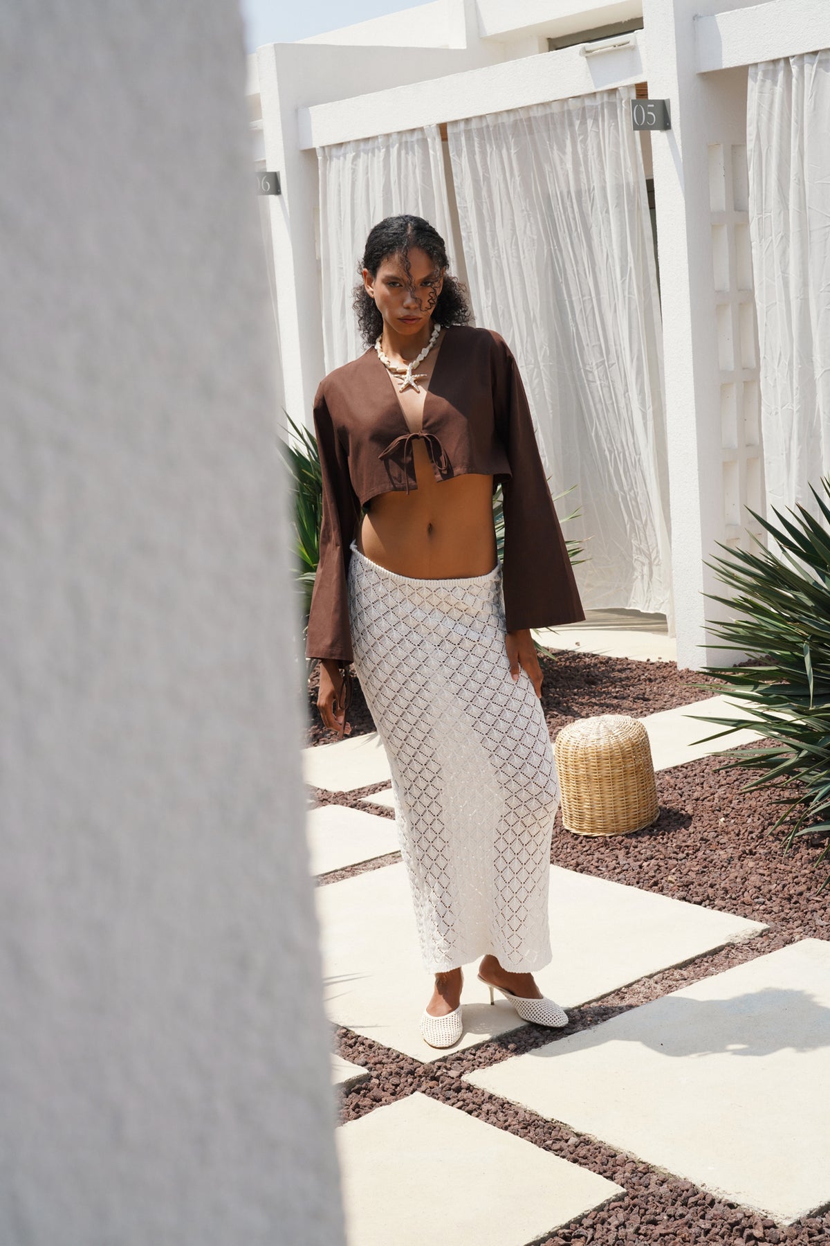 Bağlama Detay Uzun Kol Kahverengi Bluz