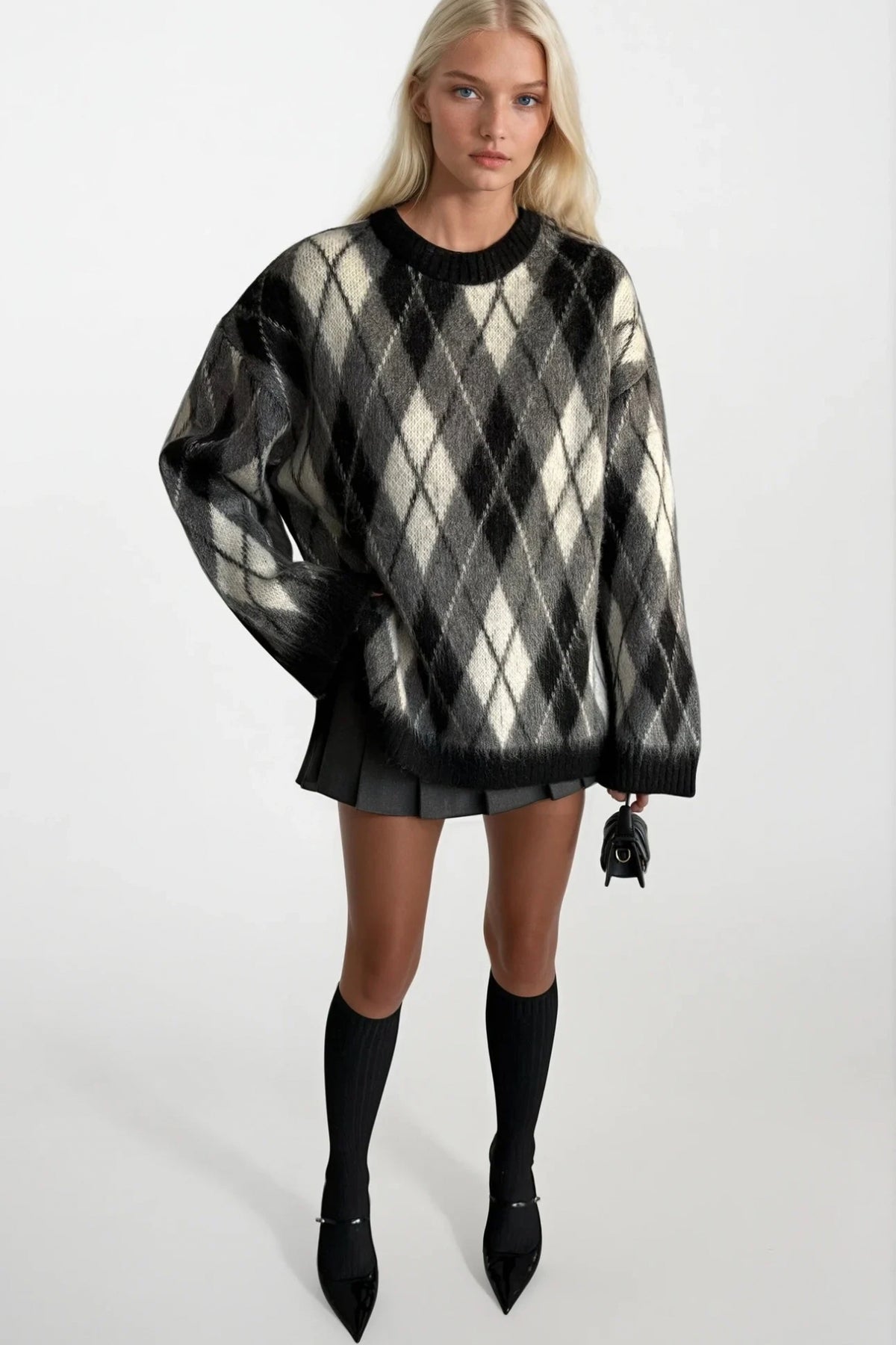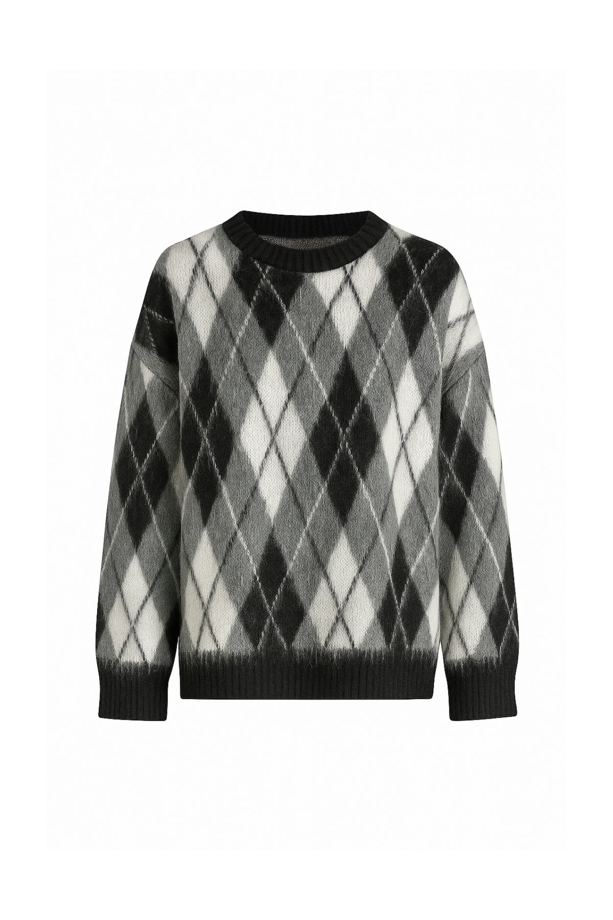 Baklava Desen Dokulu Bisiklet Yaka Siyah Triko Kazak