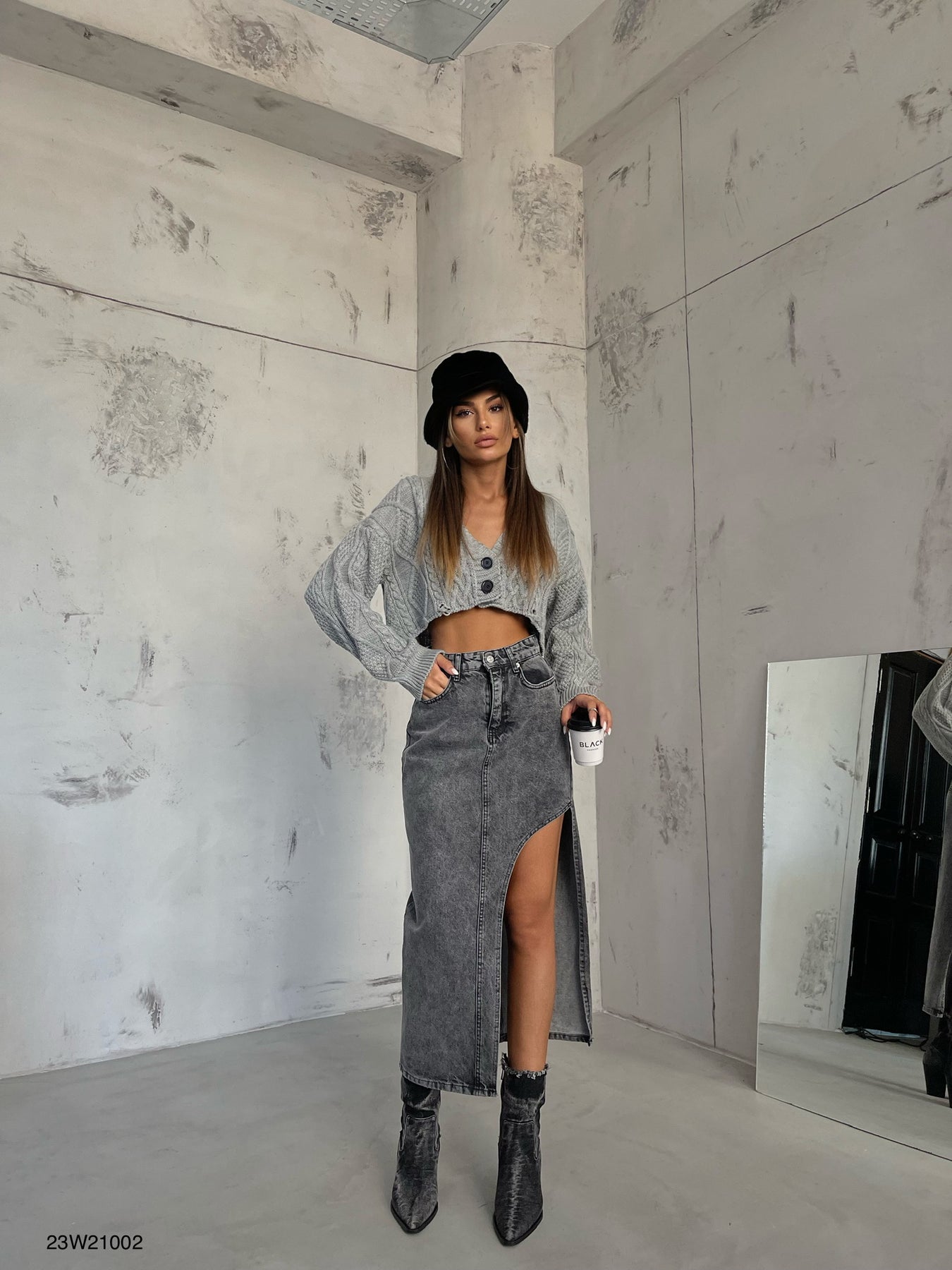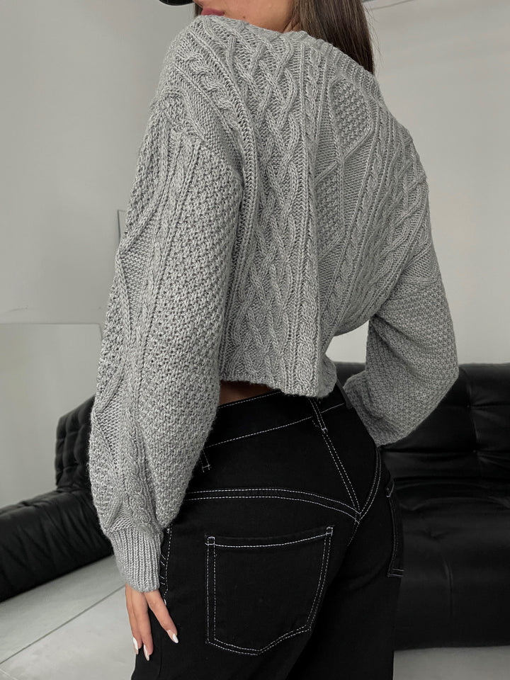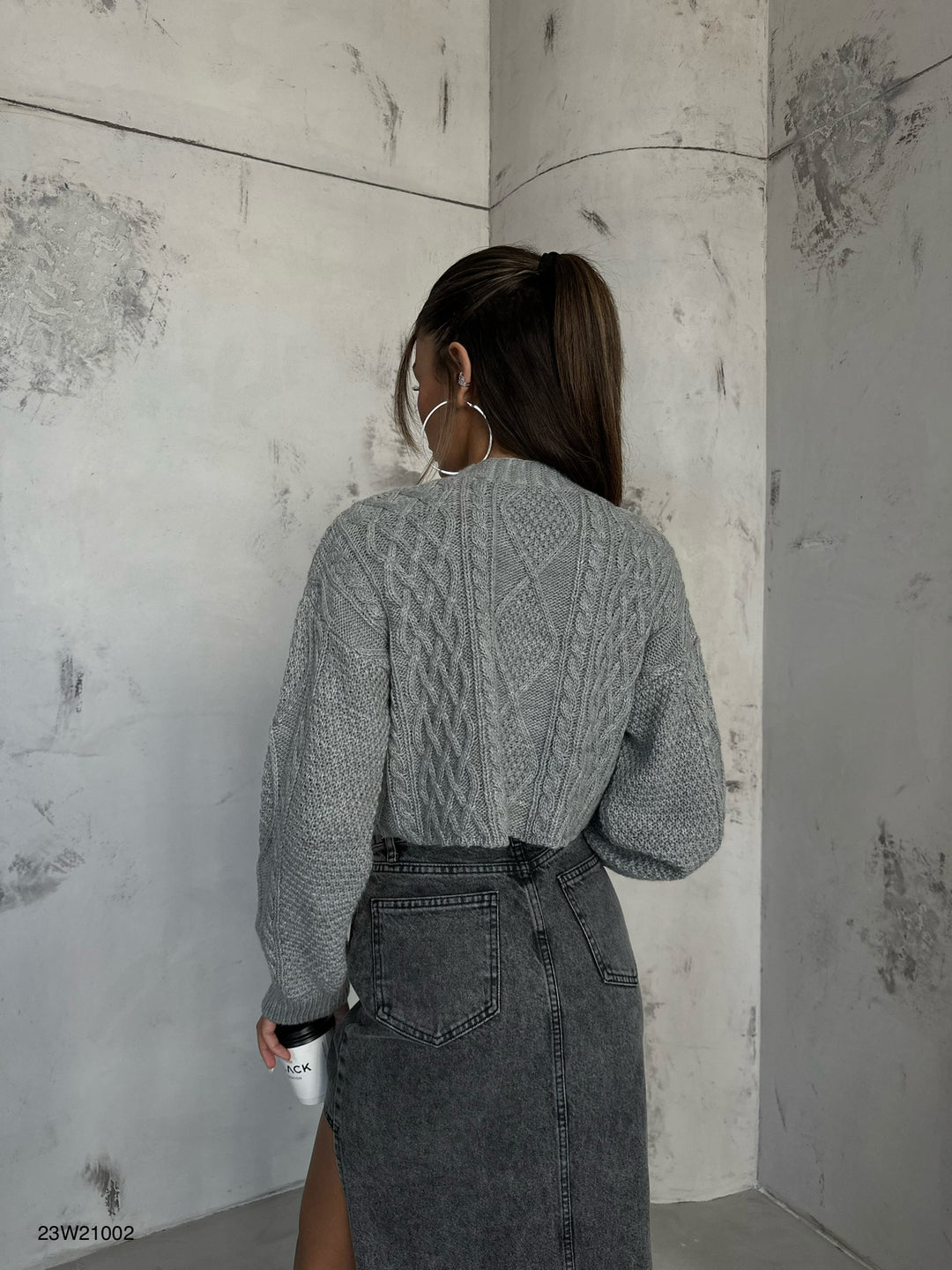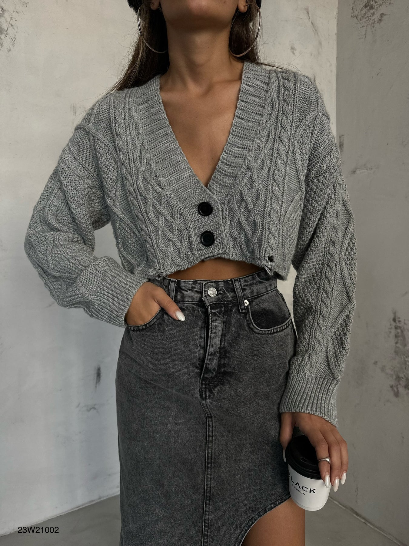 Baklava Desenli Saçaklı Çift Düğmeli Crop Hırka