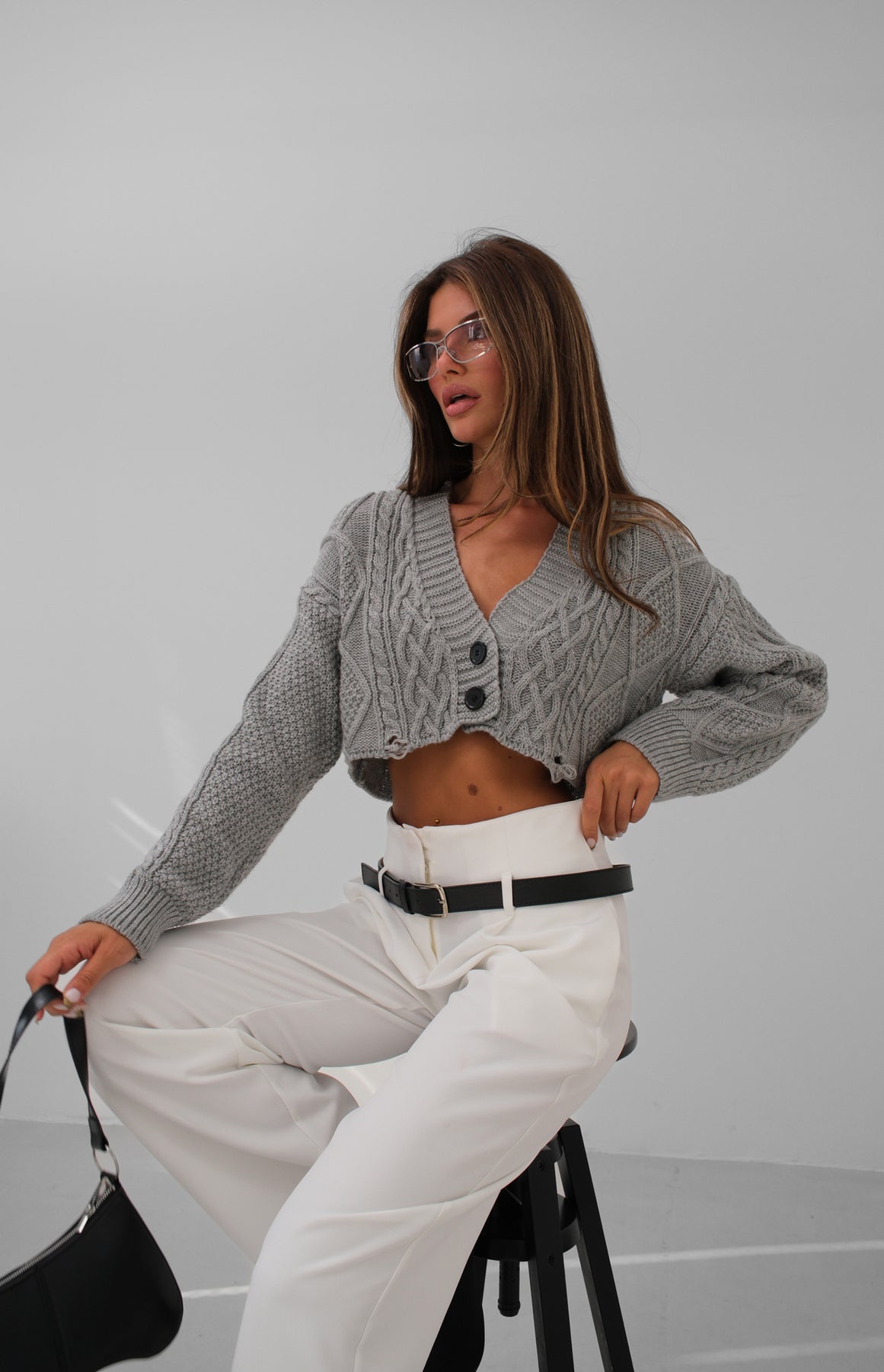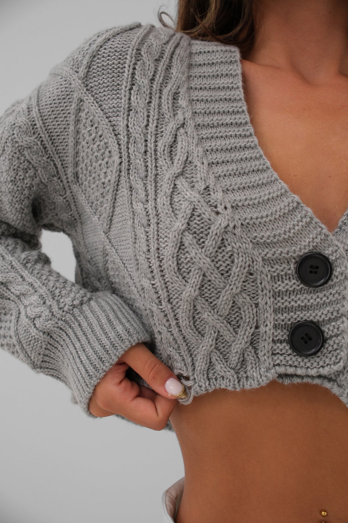 Baklava Desenli, Kontrast Düğme Detaylı, Crop, Saçaklı, Hırka