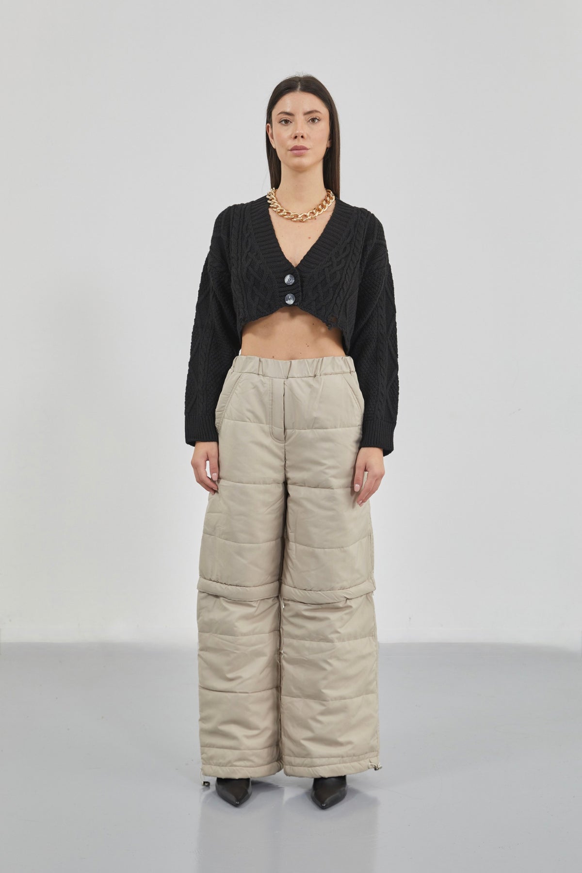 Baklava Desenli, Kontrast Düğme Detaylı, Crop, Saçaklı, Hırka