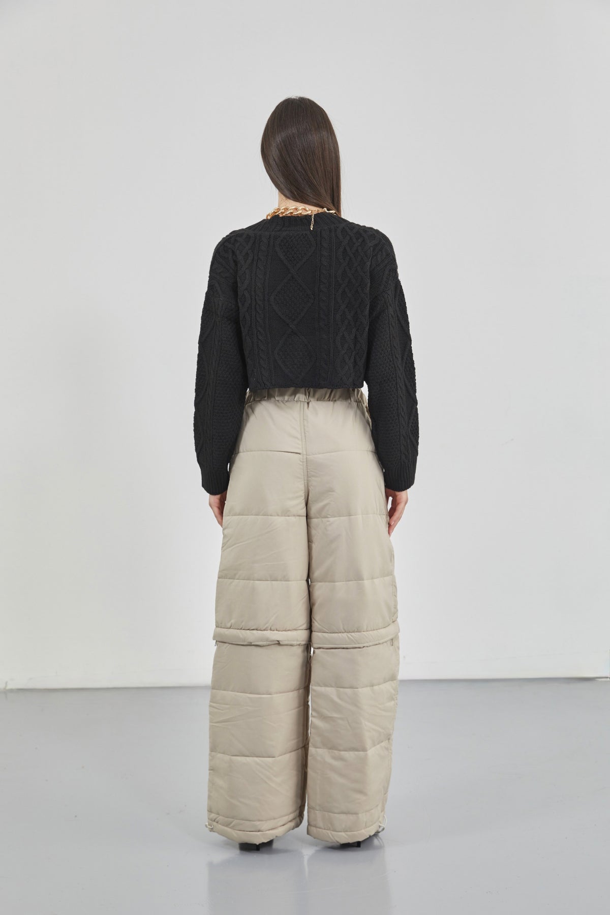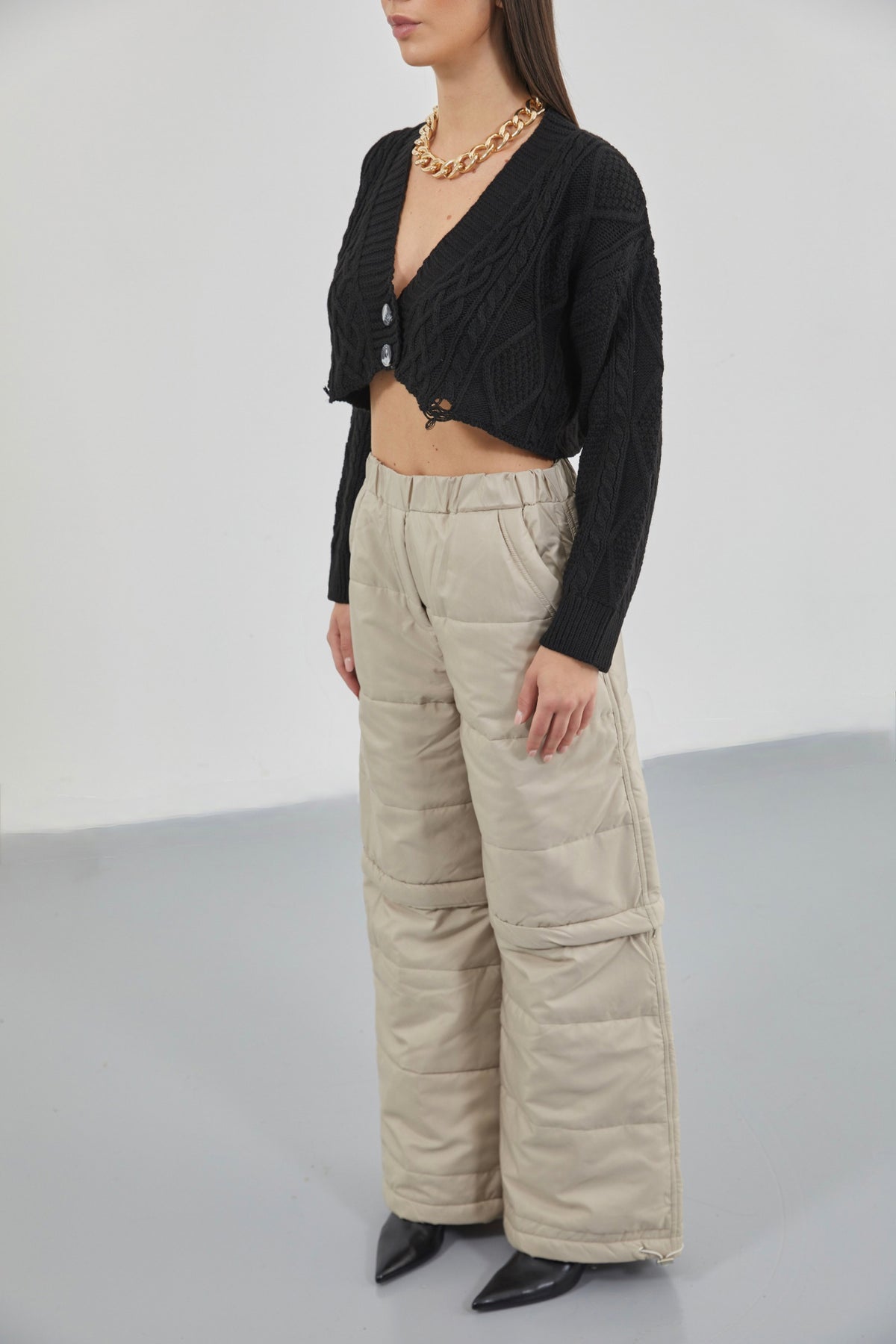 Baklava Desen Siyah Crop Saçaklı Hırka