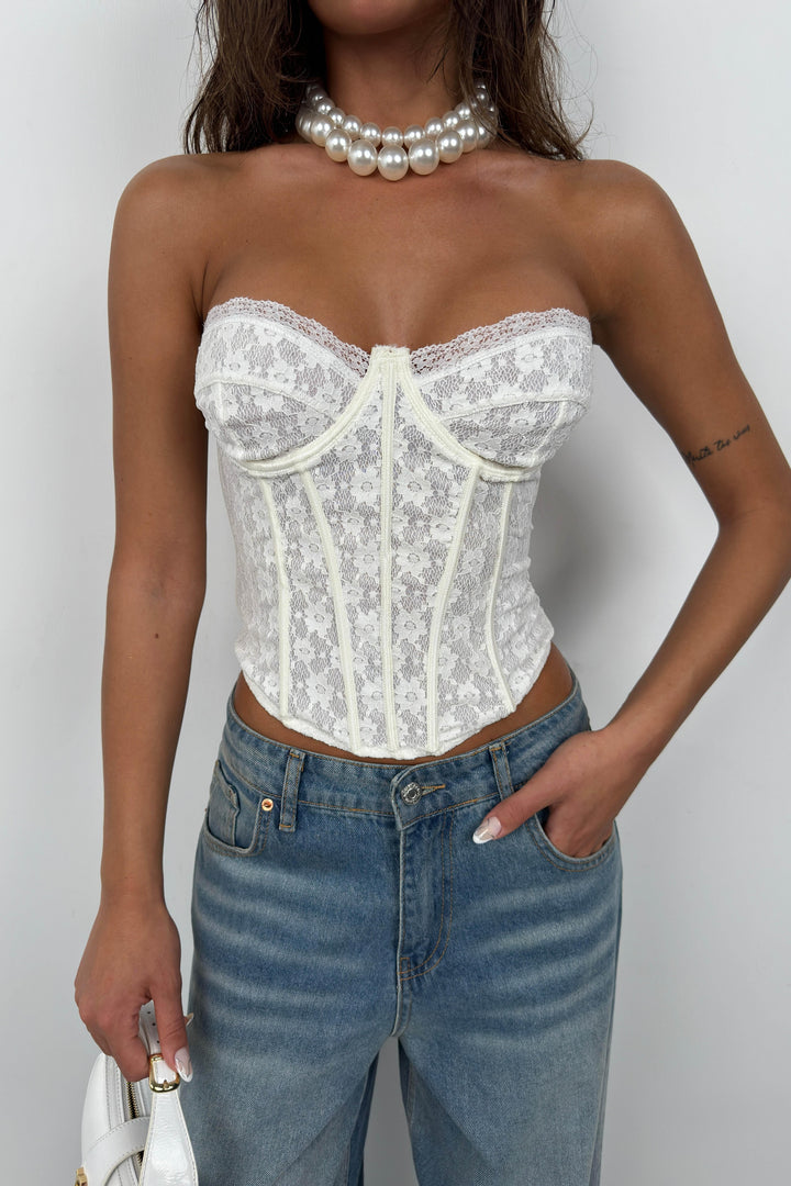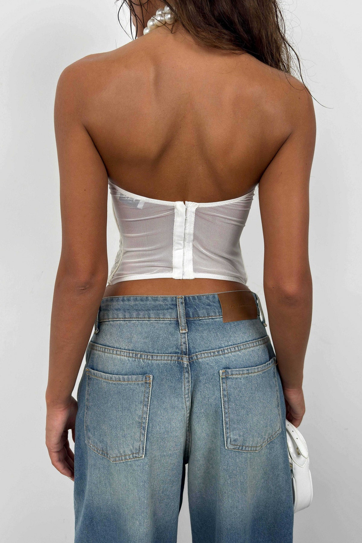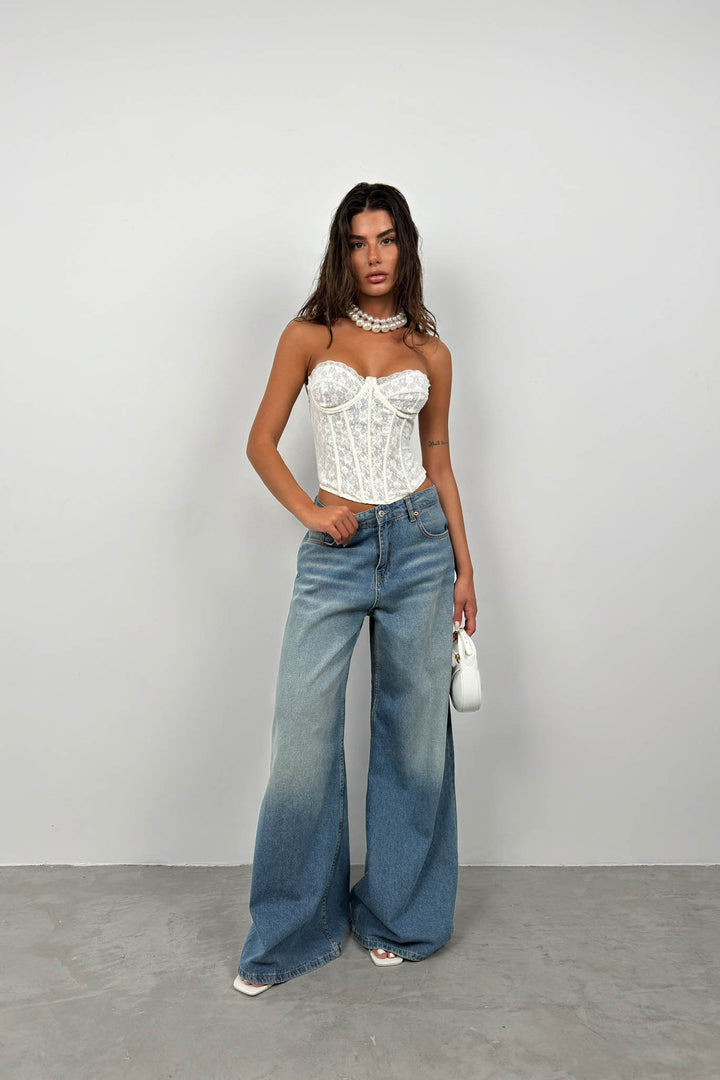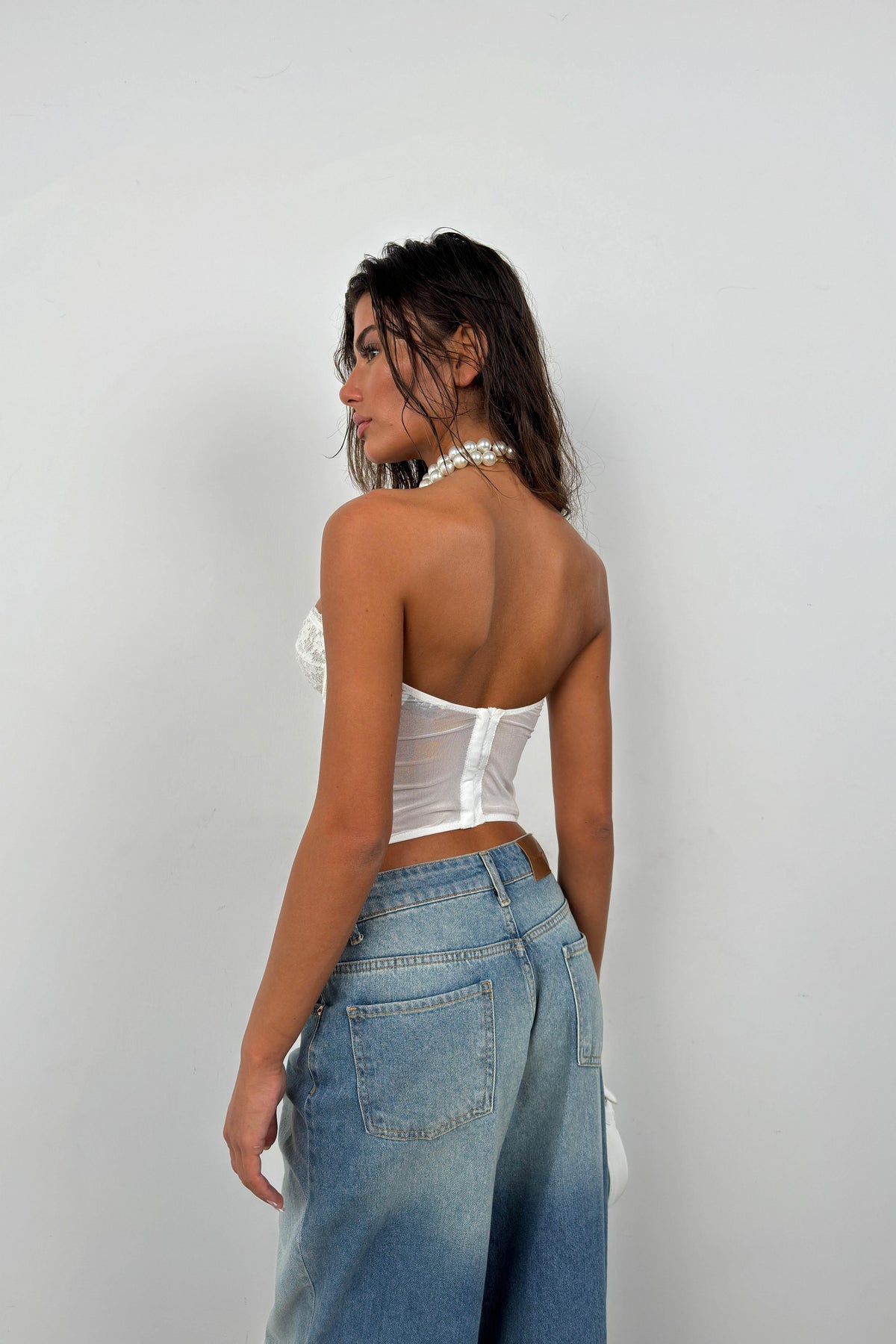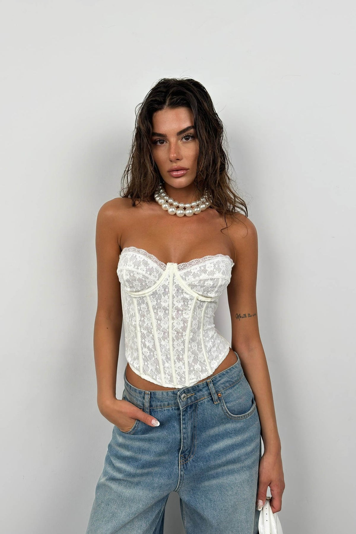 Balenli Dantel Kalp Yaka Kolsuz Bluz