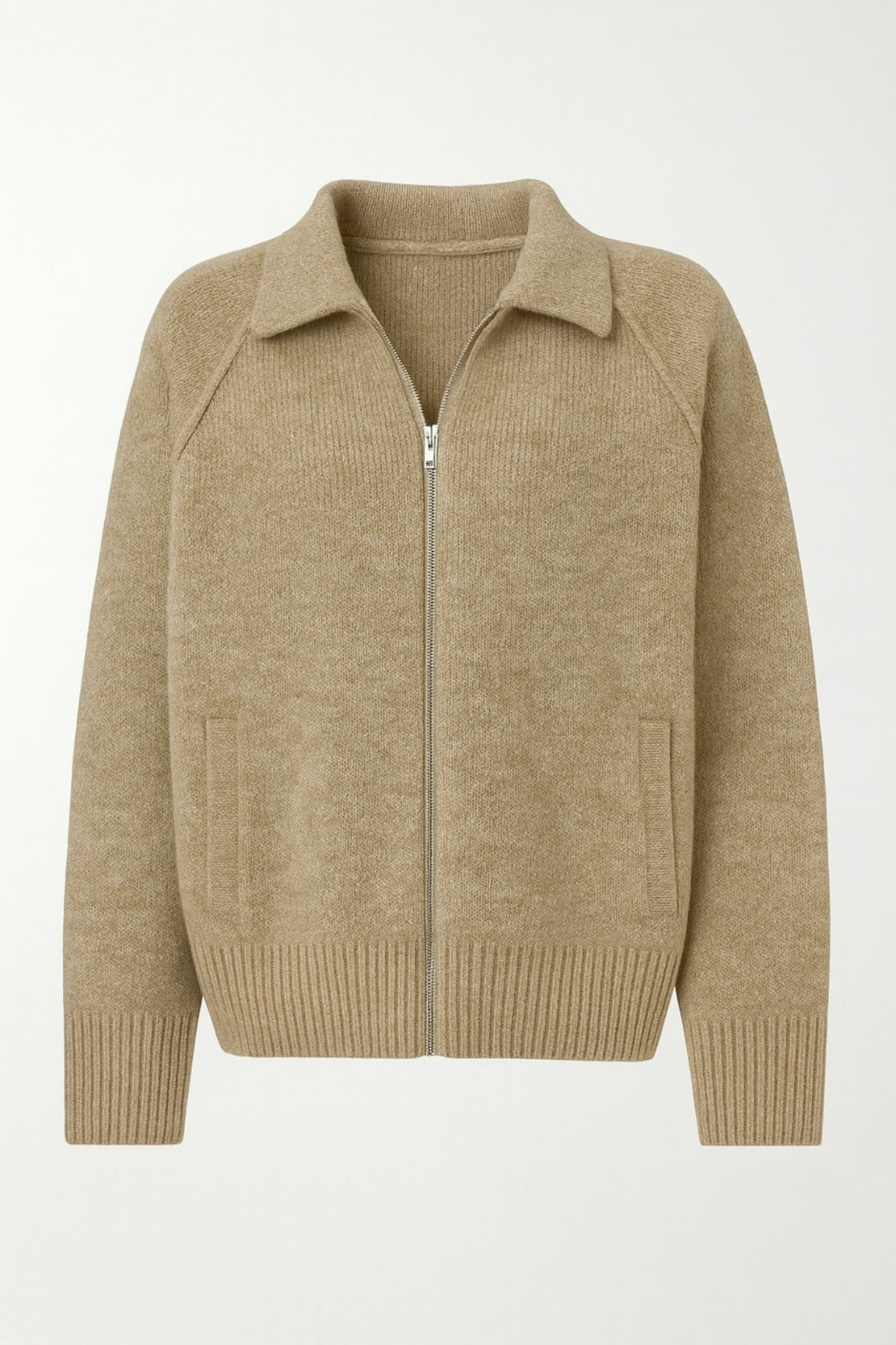 Balıkçı Yaka Fermuar Detay Vizon Kazak
