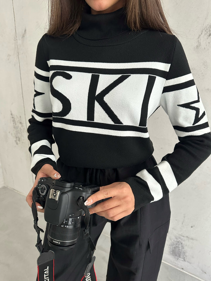 Balıkçı Yaka, Çift Renk, Yazılı, Uzun Kollu, Kazak