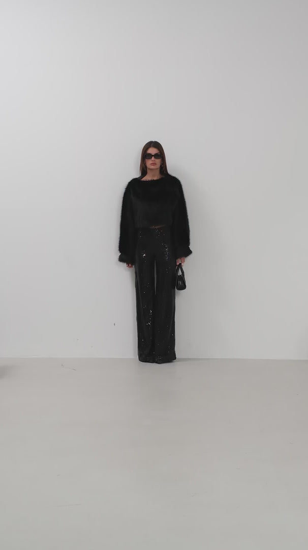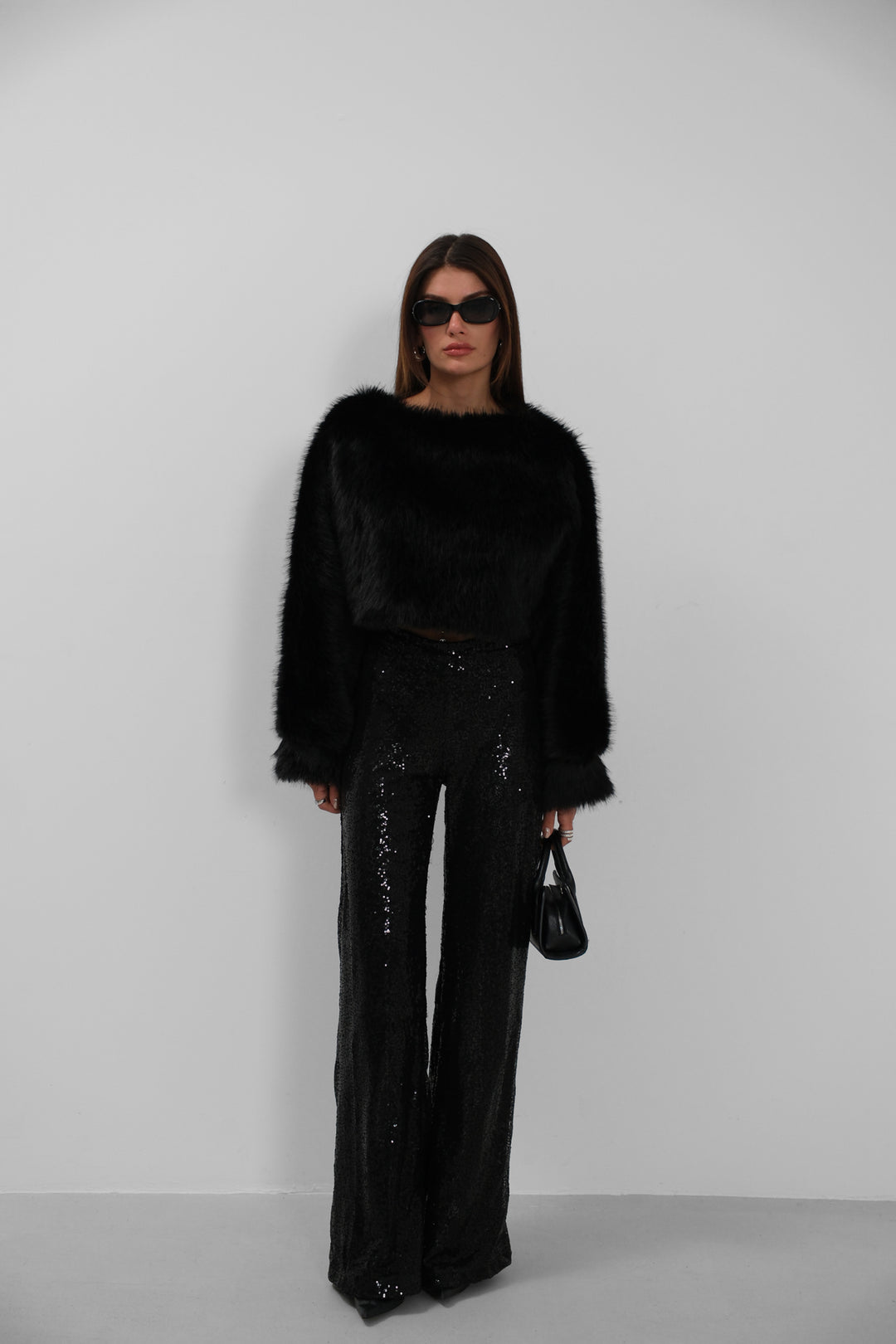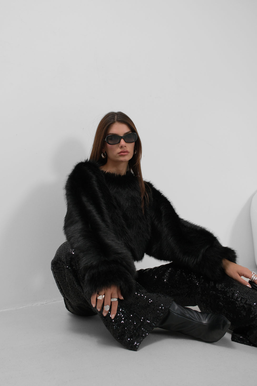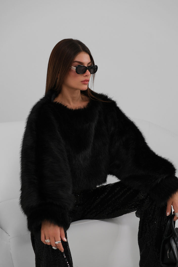 Peluş Sweatshirt, Oversize, Balon Kol, Trend
