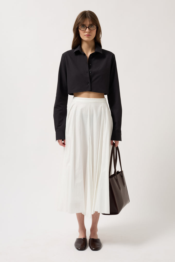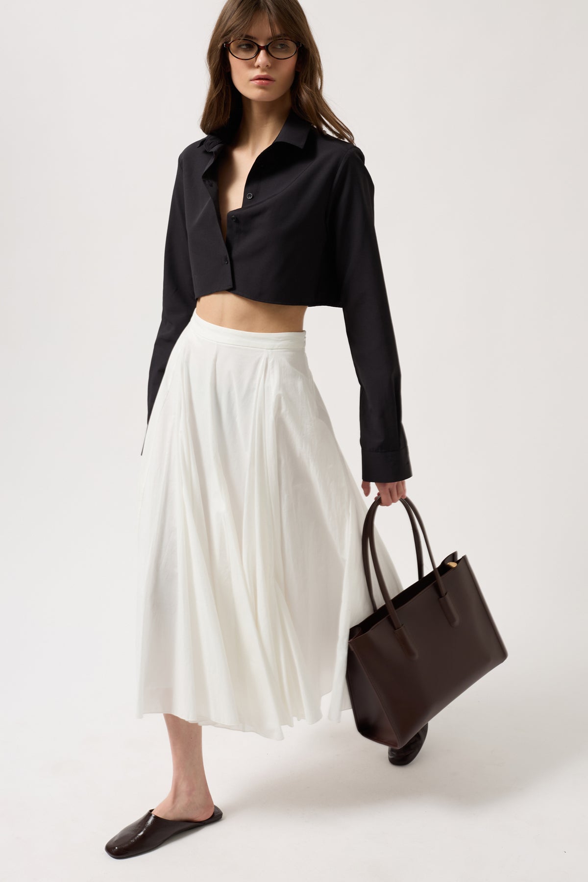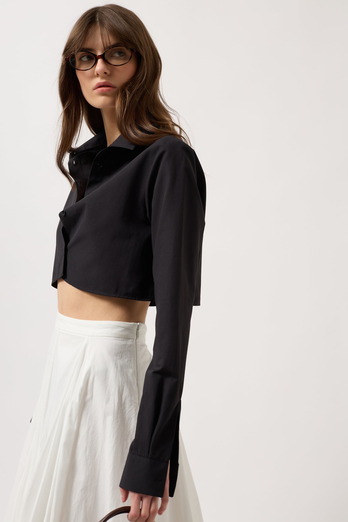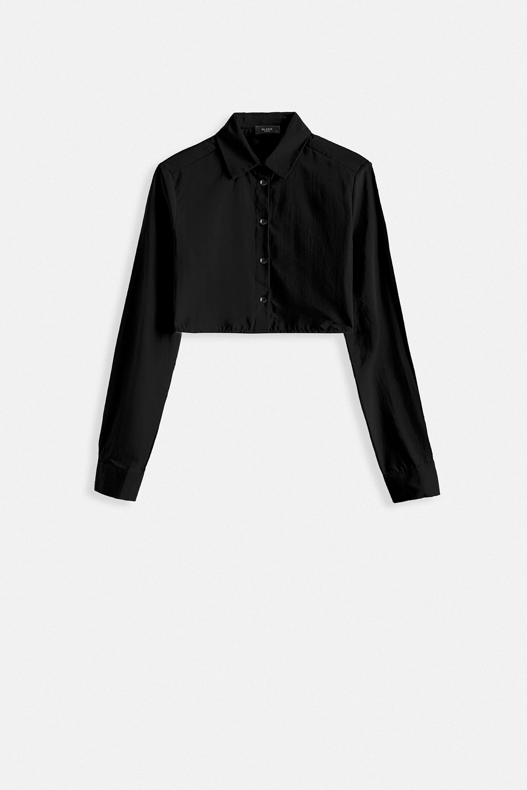 Manşeti Tek Düğmeli, Poplin Kumaş Crop Gömlek