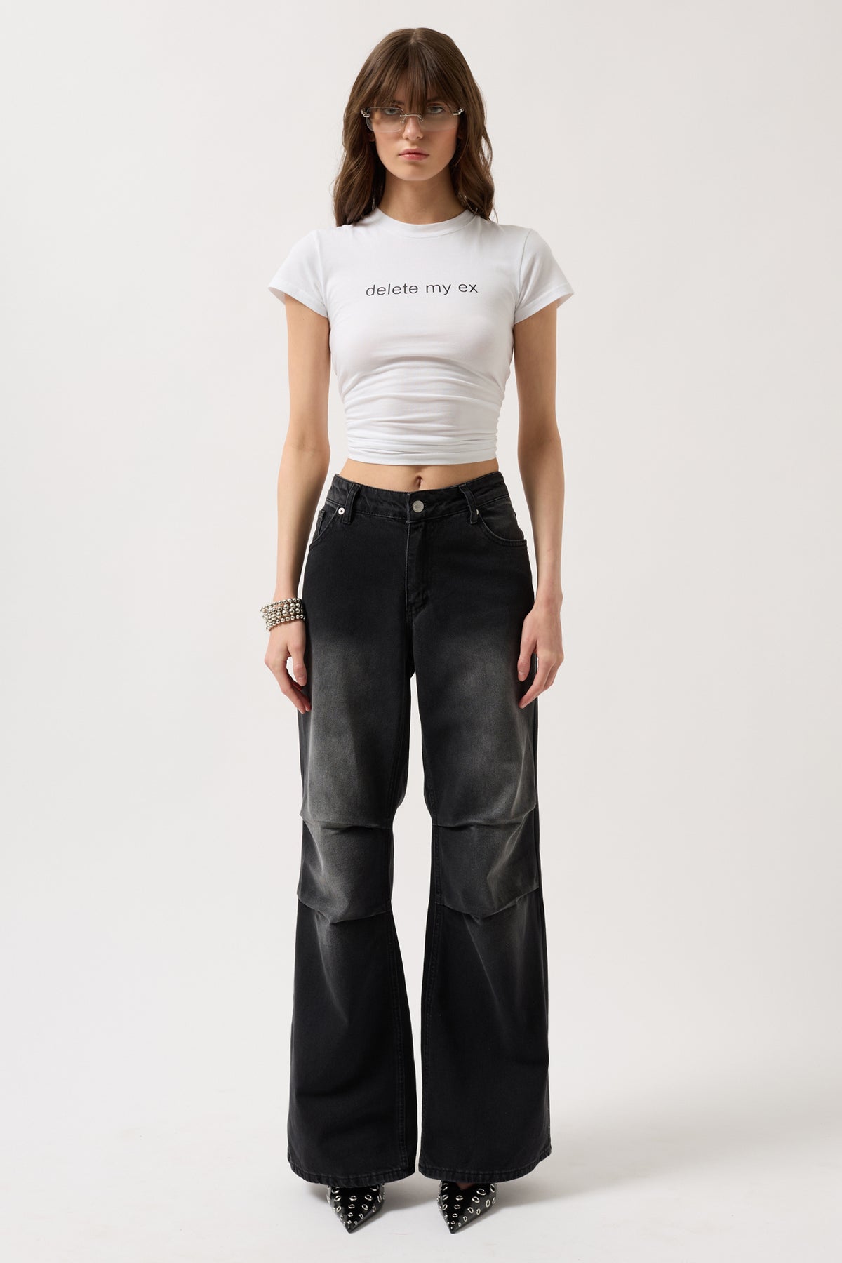 Delete My Ex Baskılı Likralı Crop Beyaz T-Shirt