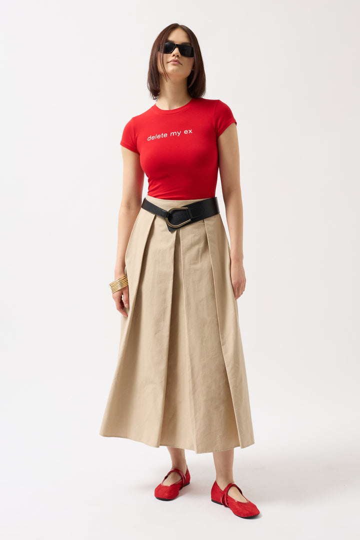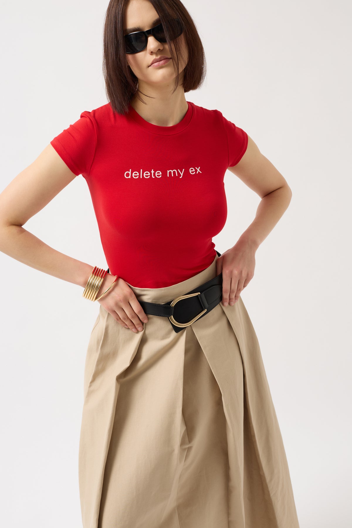 Delete My Ex Baskılı Likralı Crop Kırmızı T-Shirt