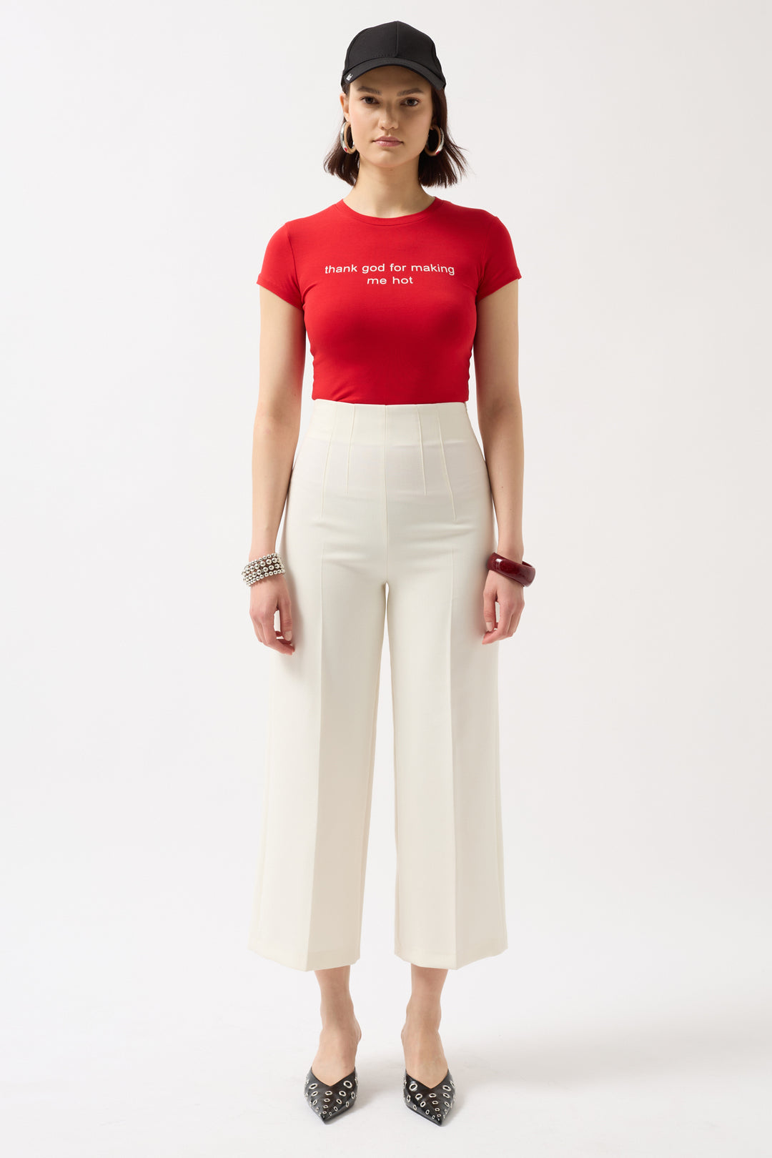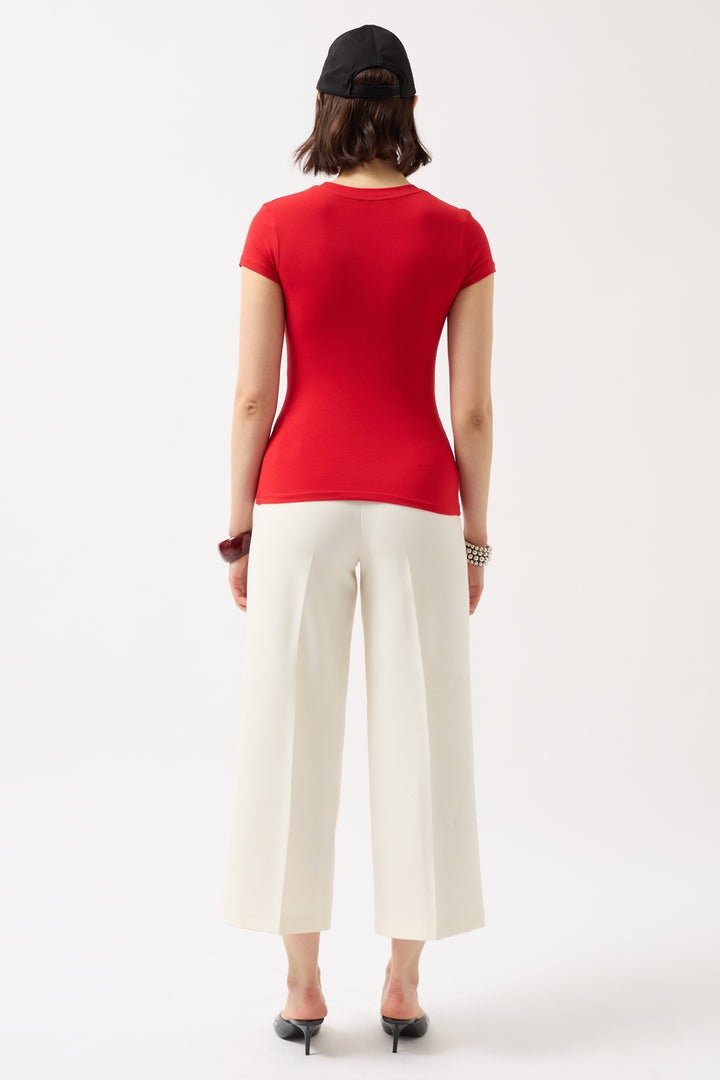 Thanks God Baskılı Likralı Crop Kırmızı T-Shirt