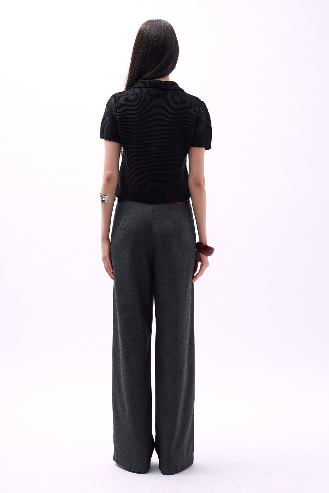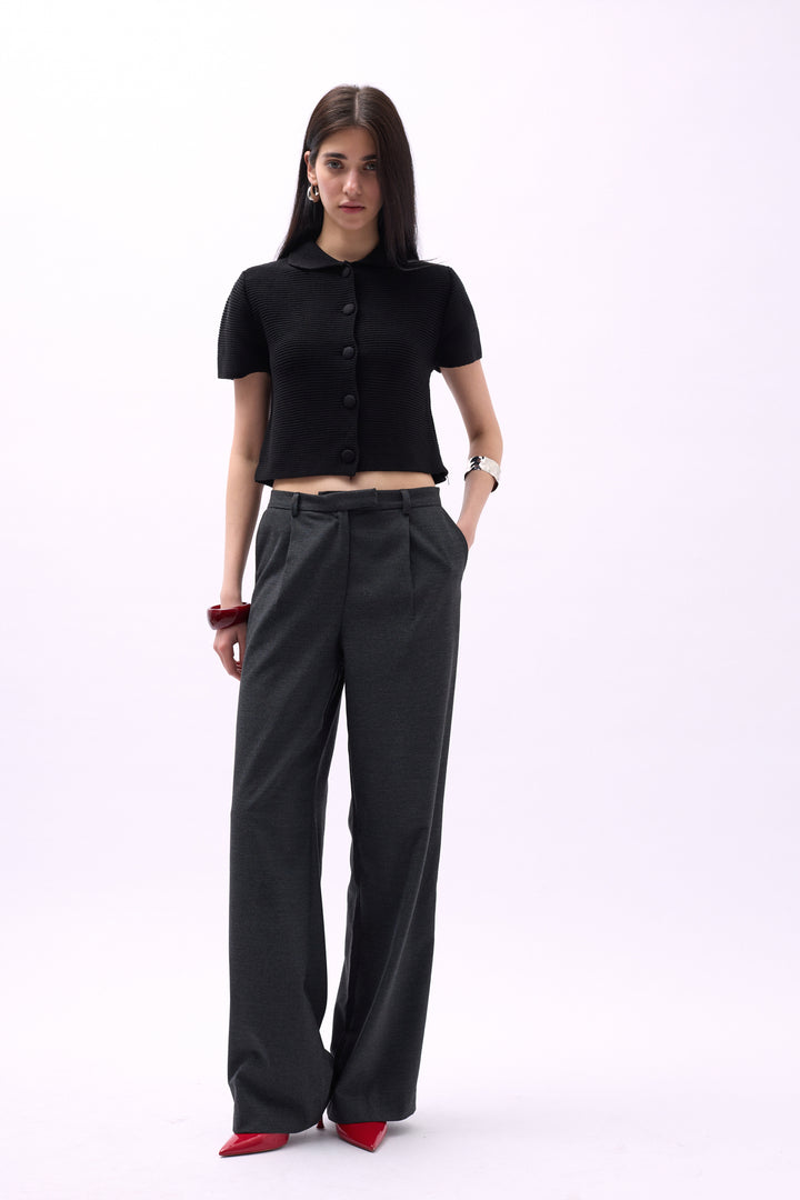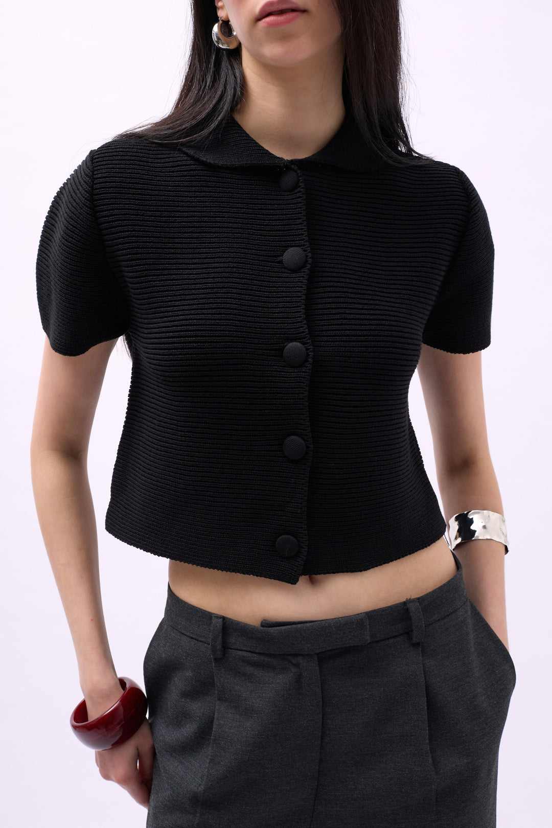 Kısa Kol, Polo Yaka, Düğmeli, Triko Örgü Crop Bluz