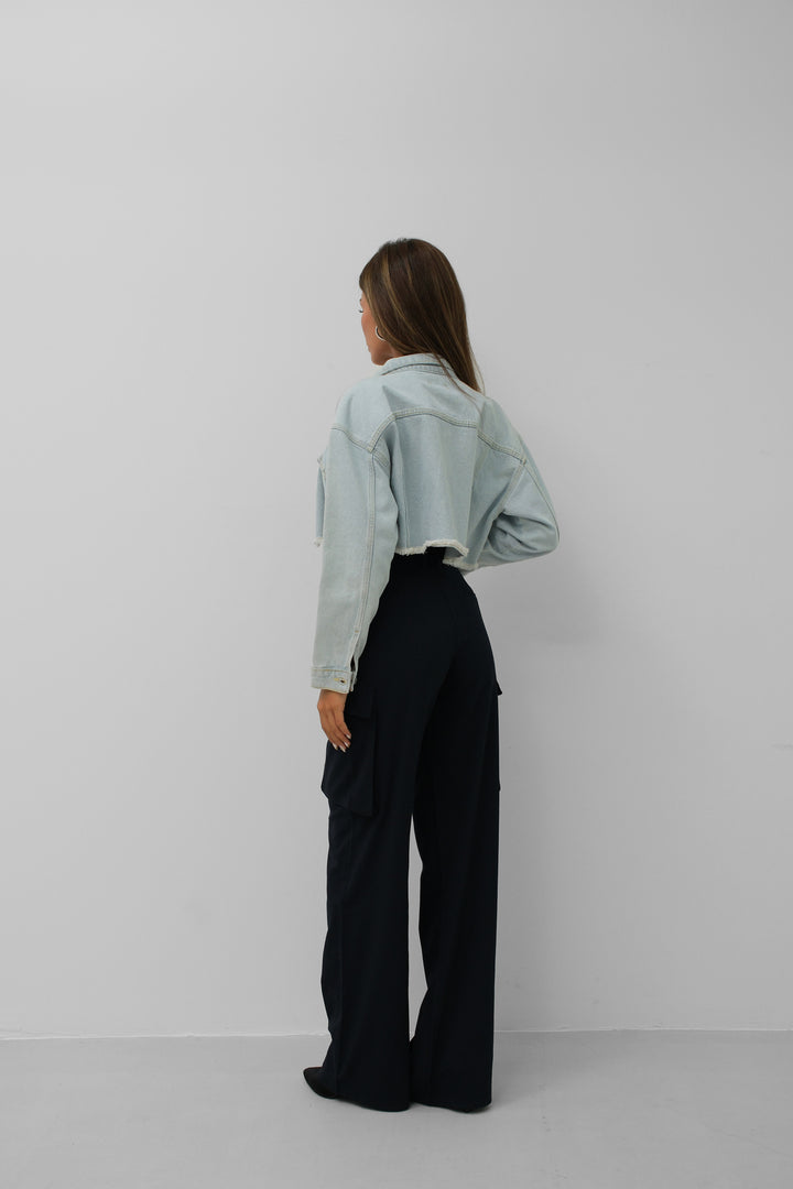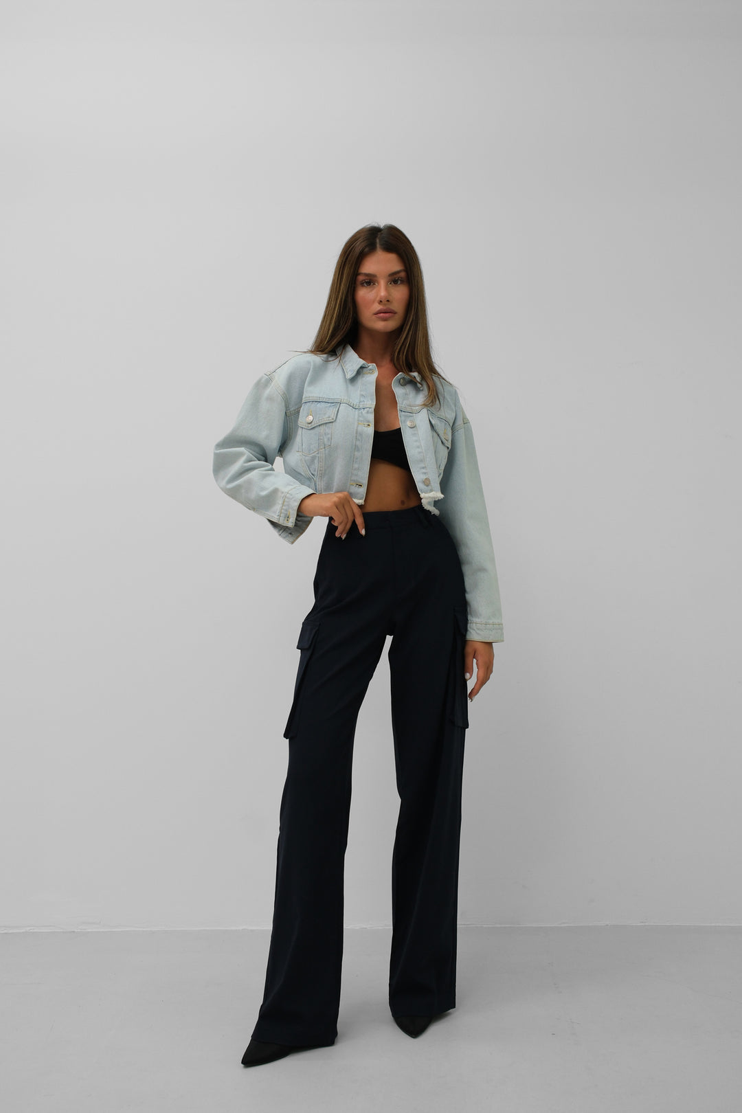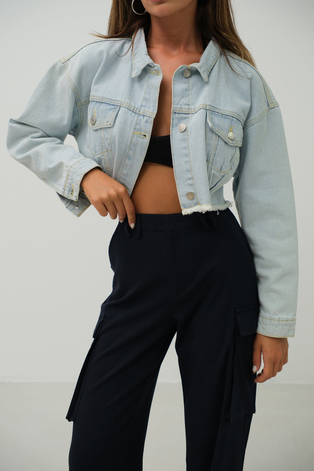 Etek Ucu Pis Dikişli, Crop, Metal Düğmeli, Denim Ceket