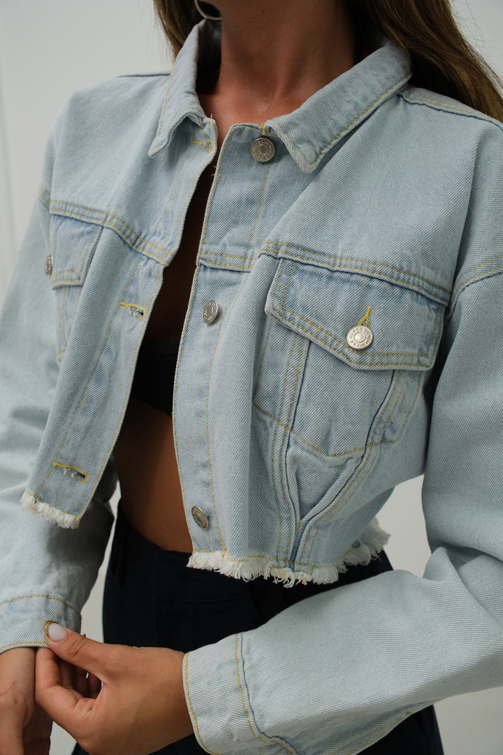 Bel Ucu Dikişsiz Açık Mavi Kot Ceket