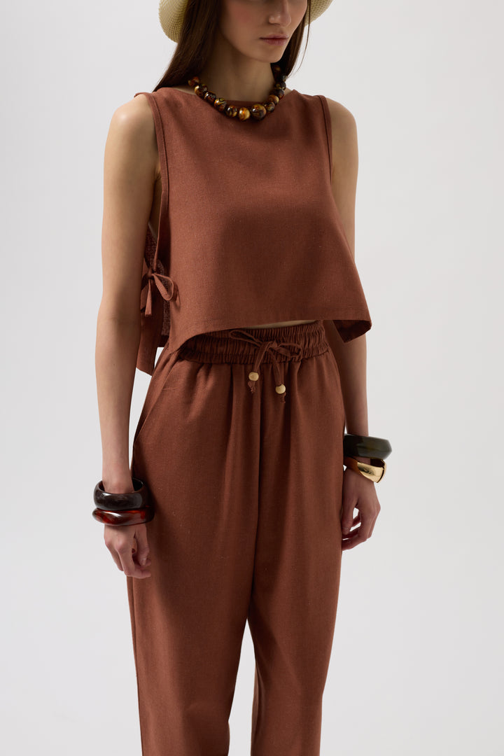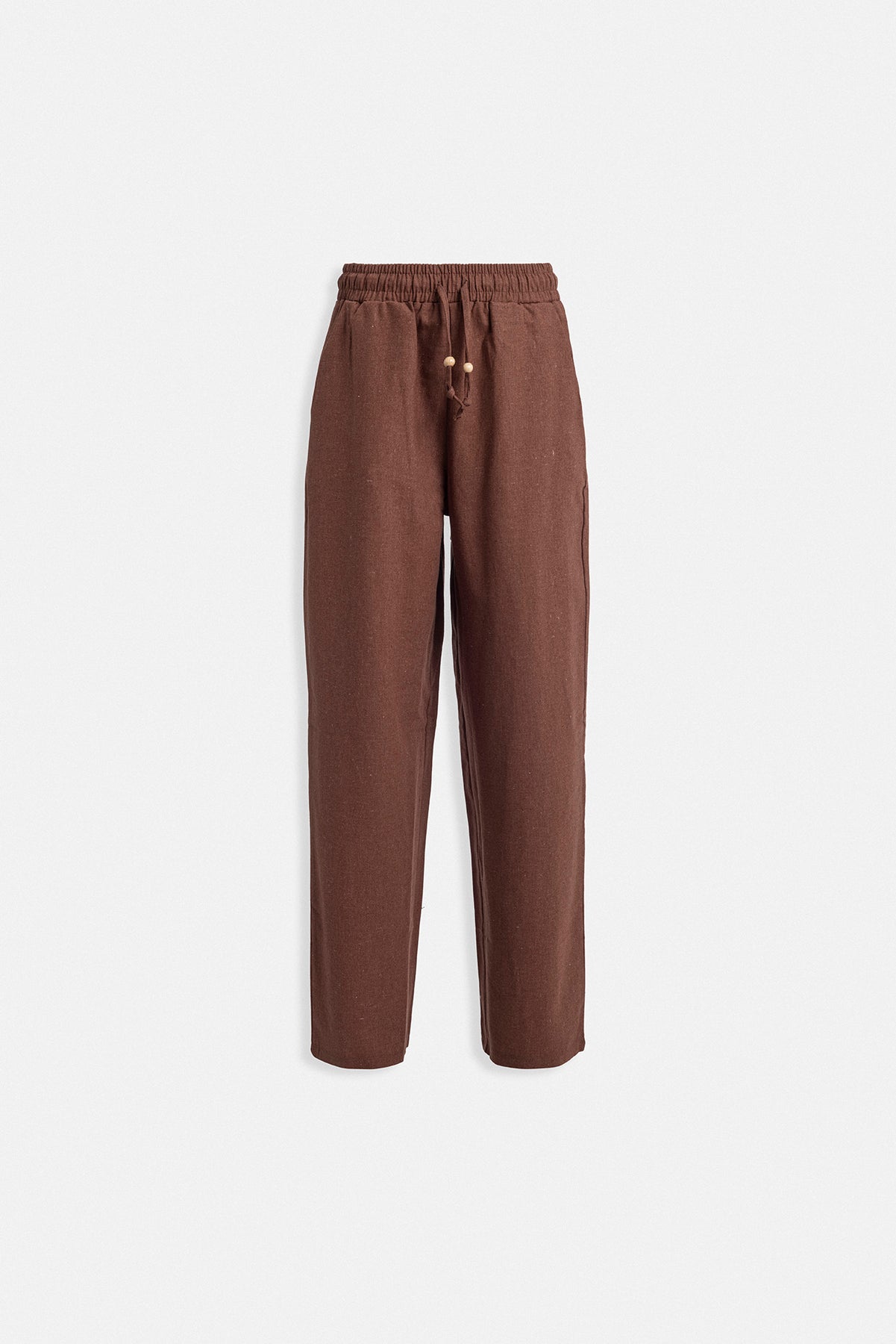 Beli Lastikli, Bağcık Aksesuar Detaylı, Rahat Kesim, Keten Pantolon