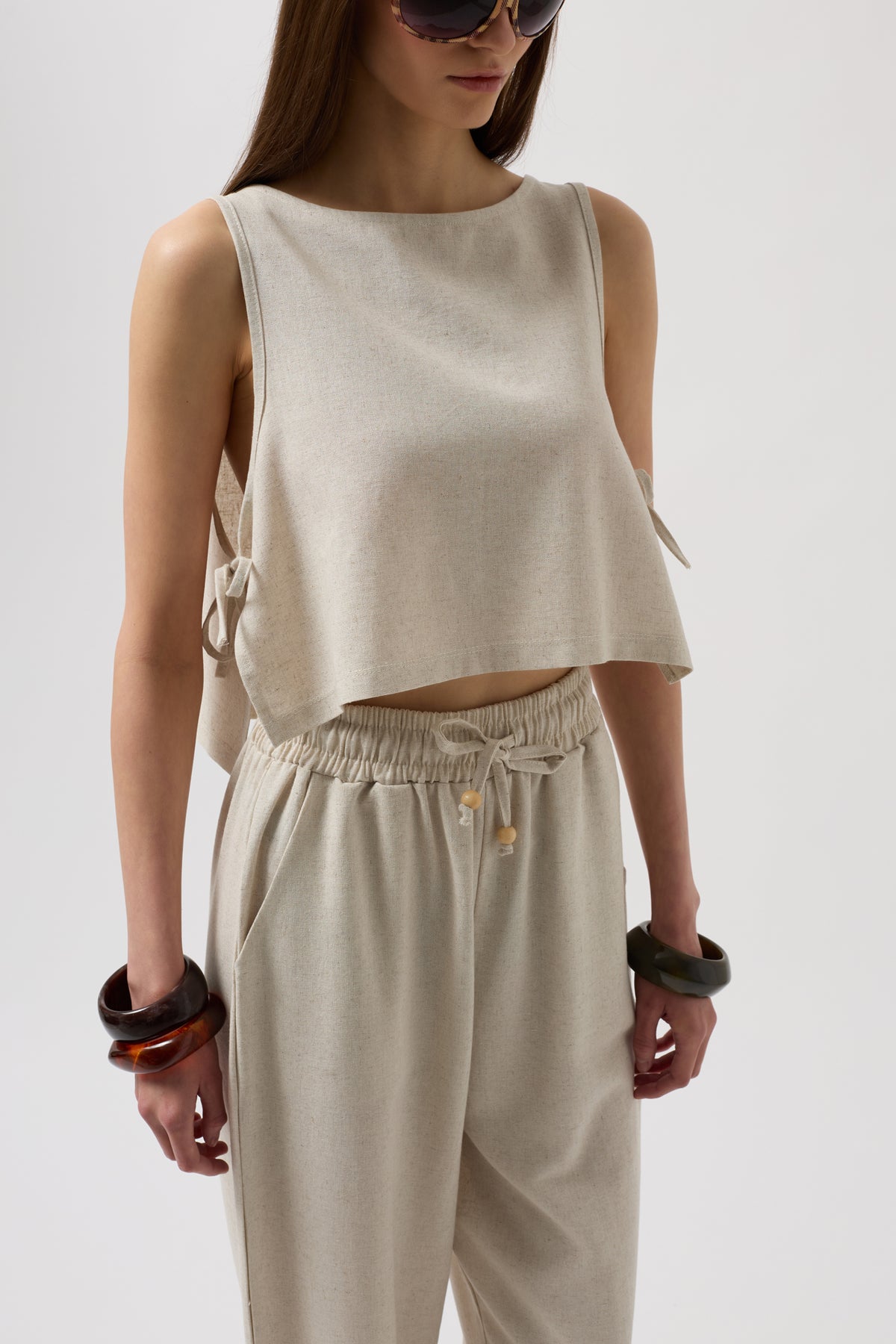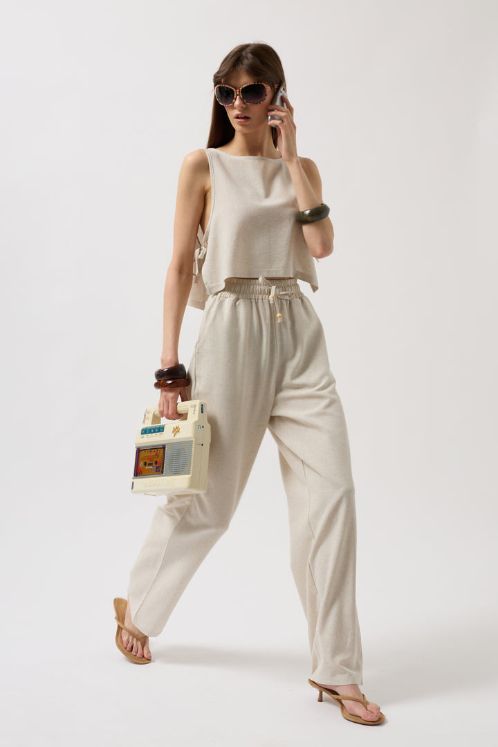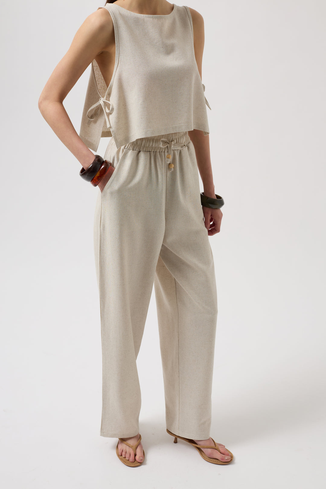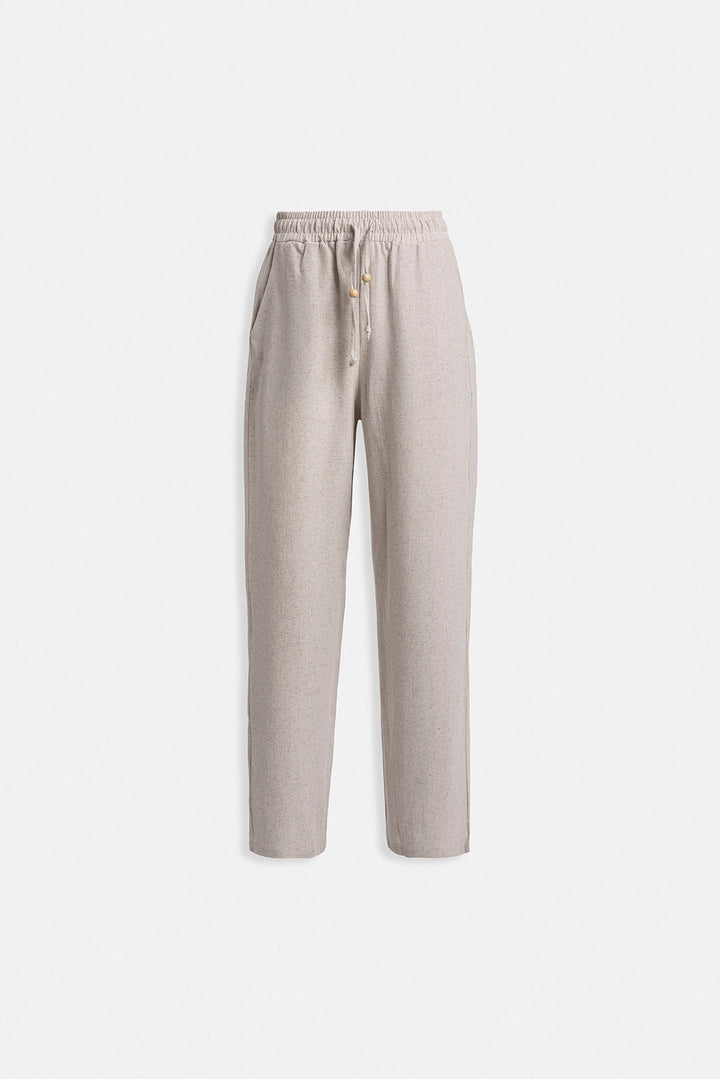 Beli Lastikli, Bağcık Aksesuar Detaylı, Rahat Kesim, Keten Pantolon