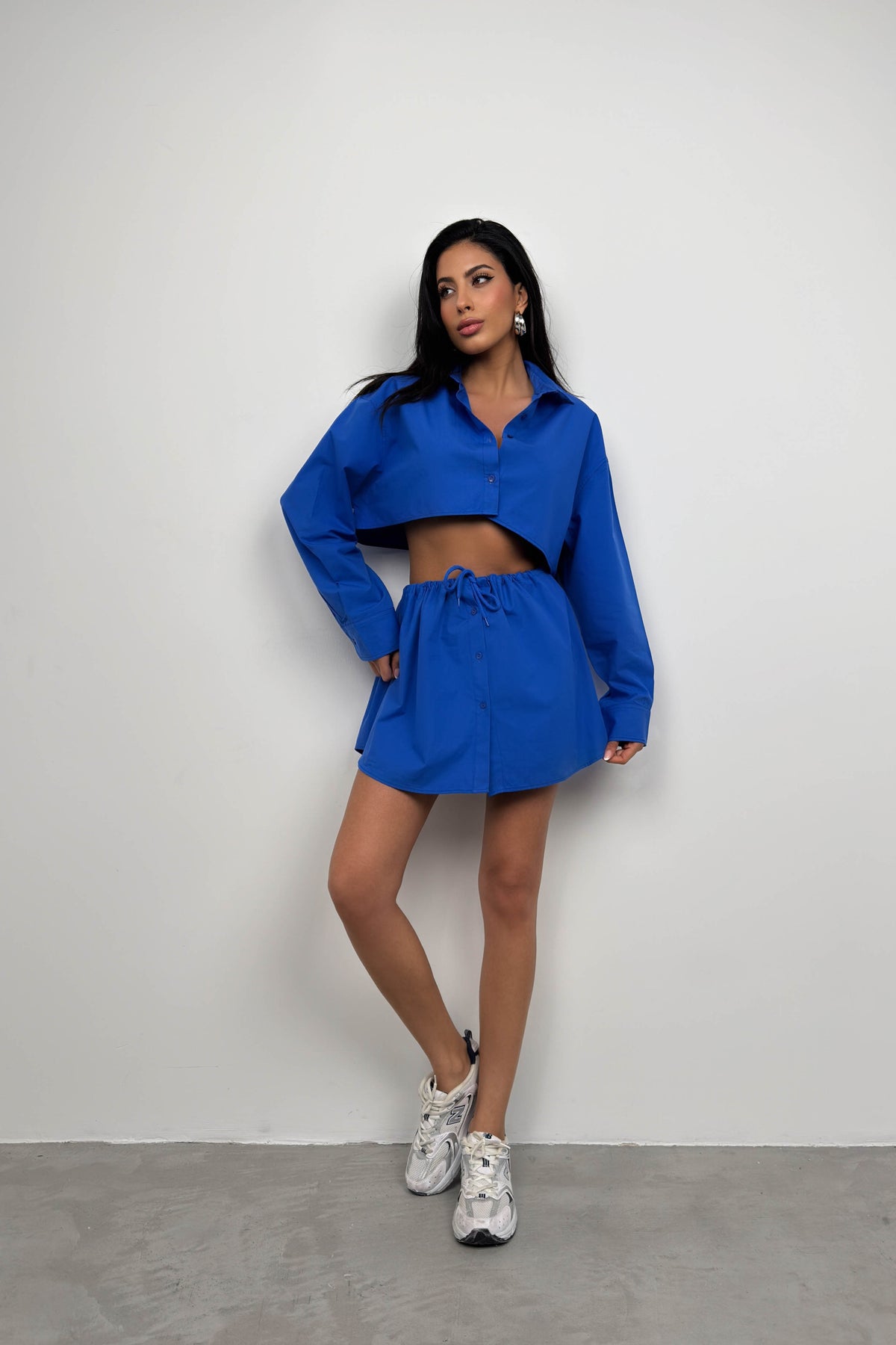 Beli Lastikli, Dikiş Detay, Cepli, Düğmeli, Mini Etek