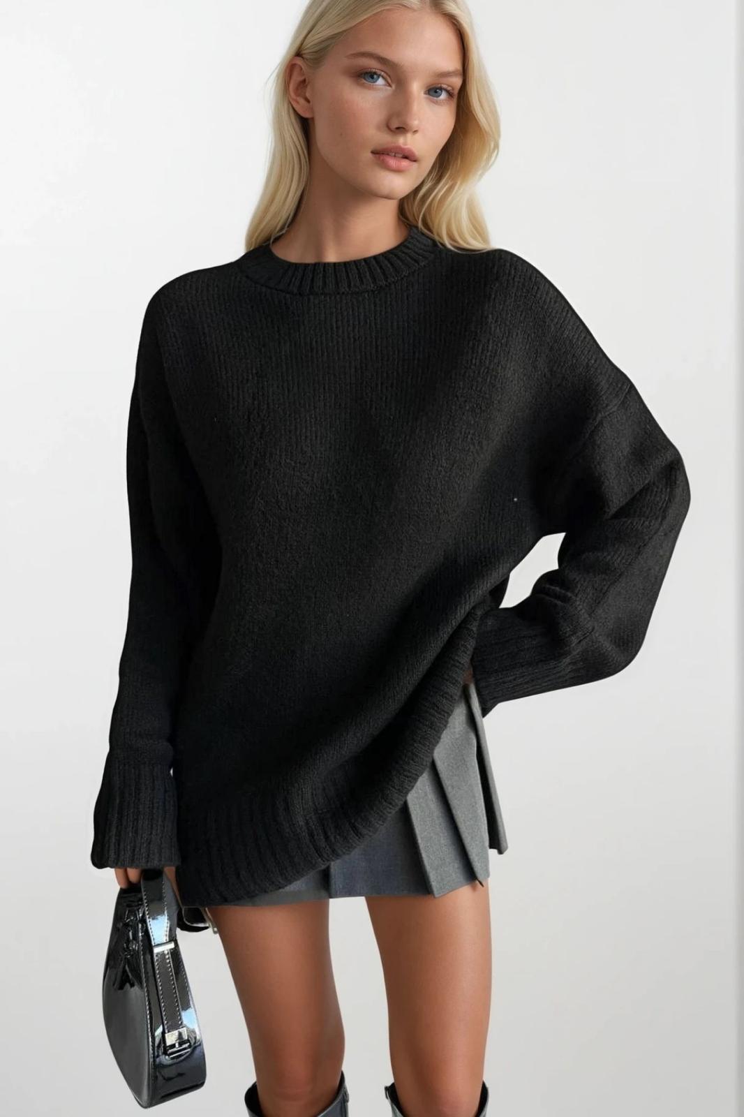 Bisiklet Yaka Basic Triko Siyah Kazak