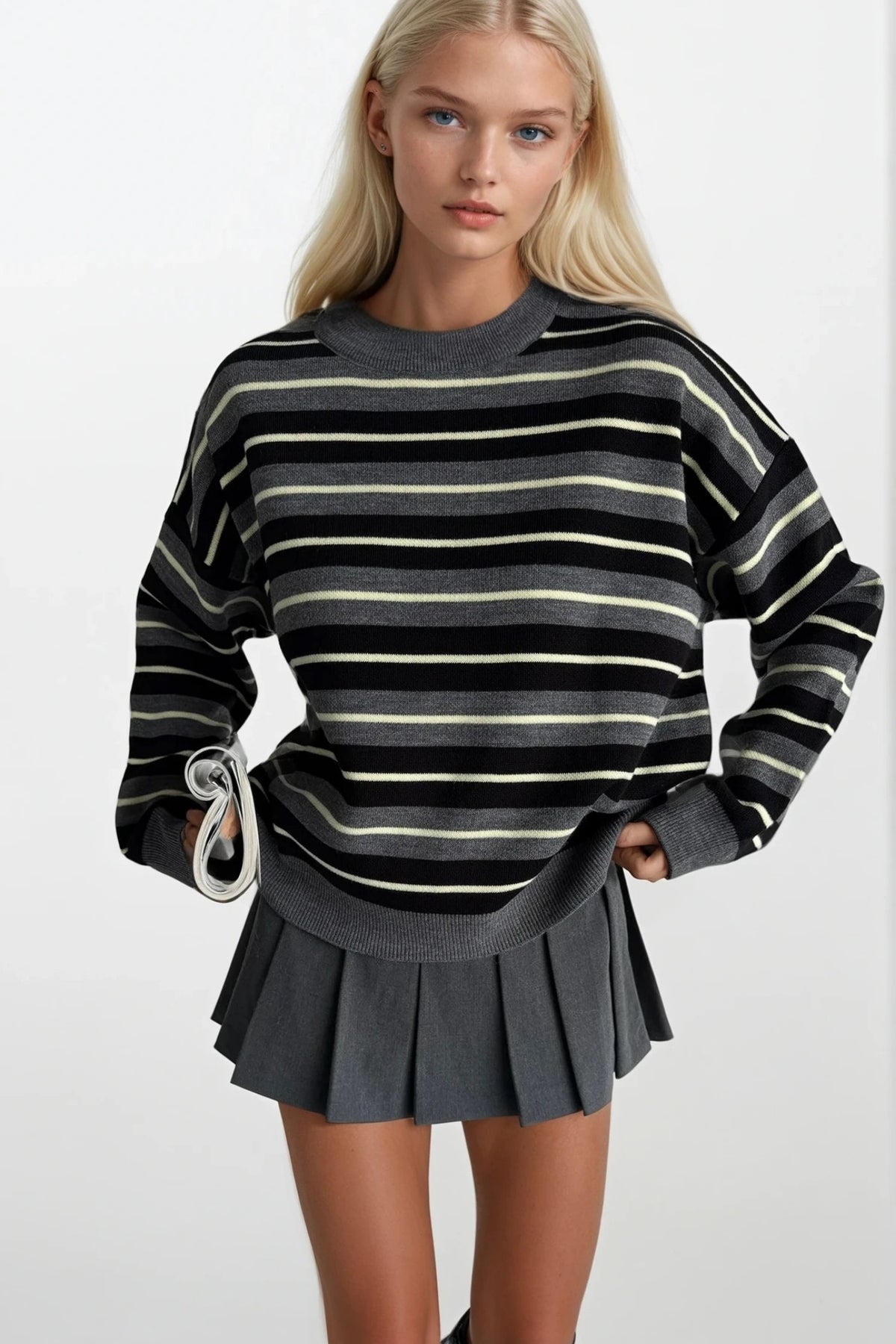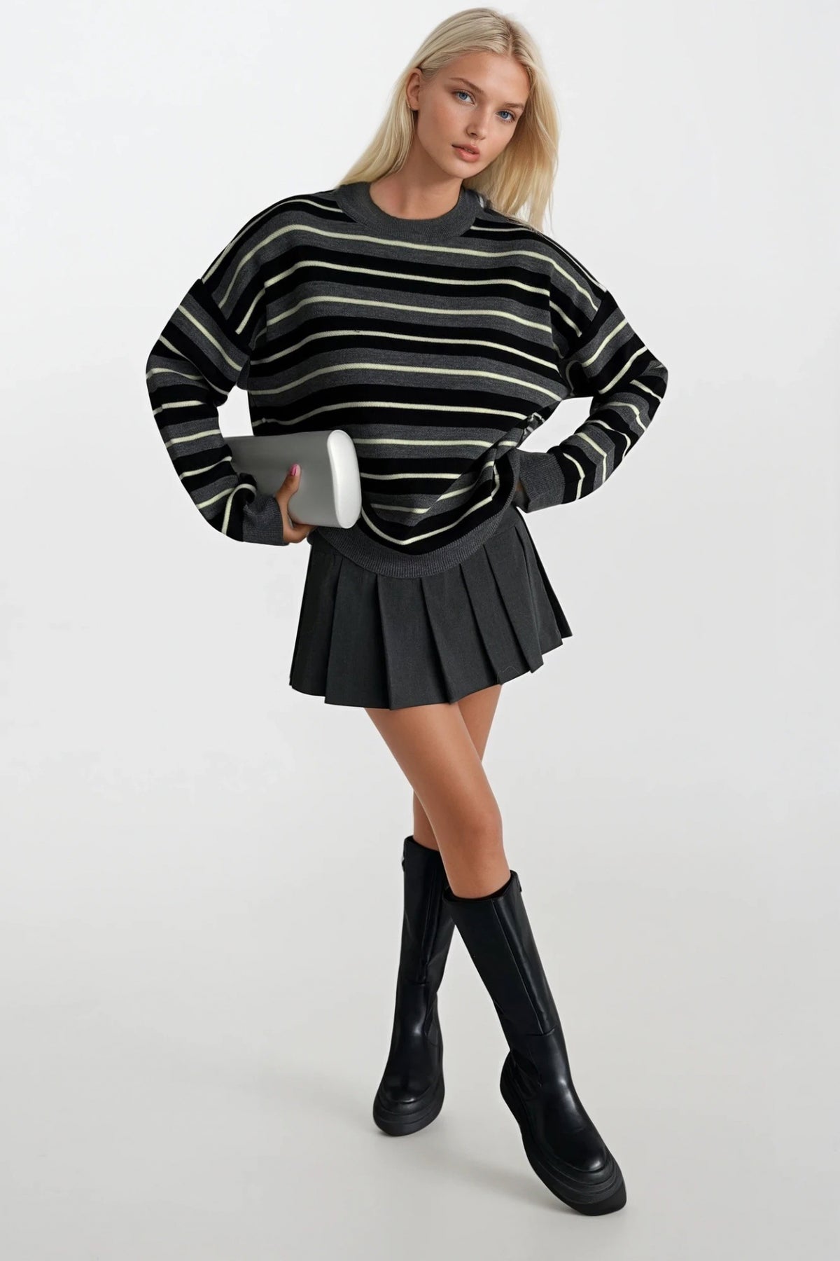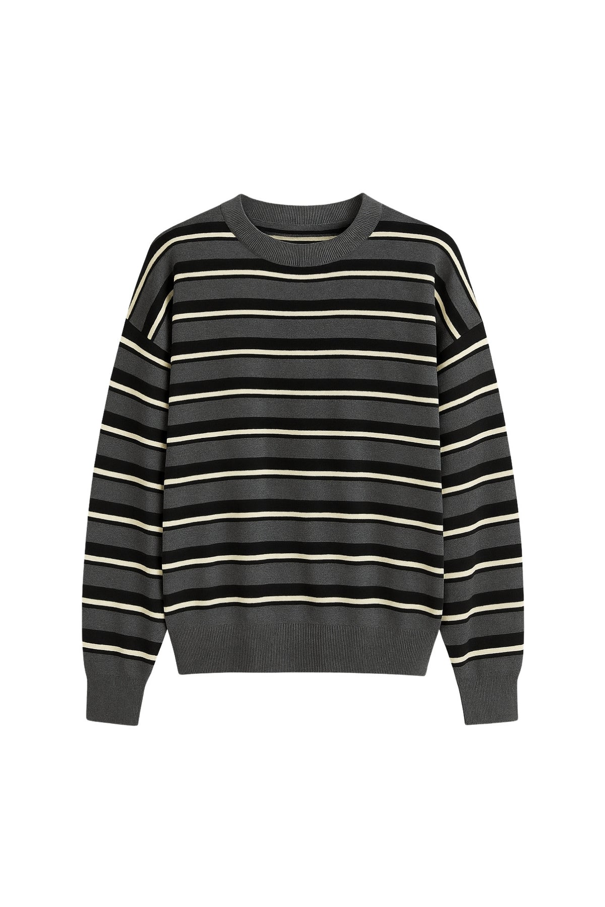 Bisiklet Yaka Çizgili Triko Antrasit Bluz