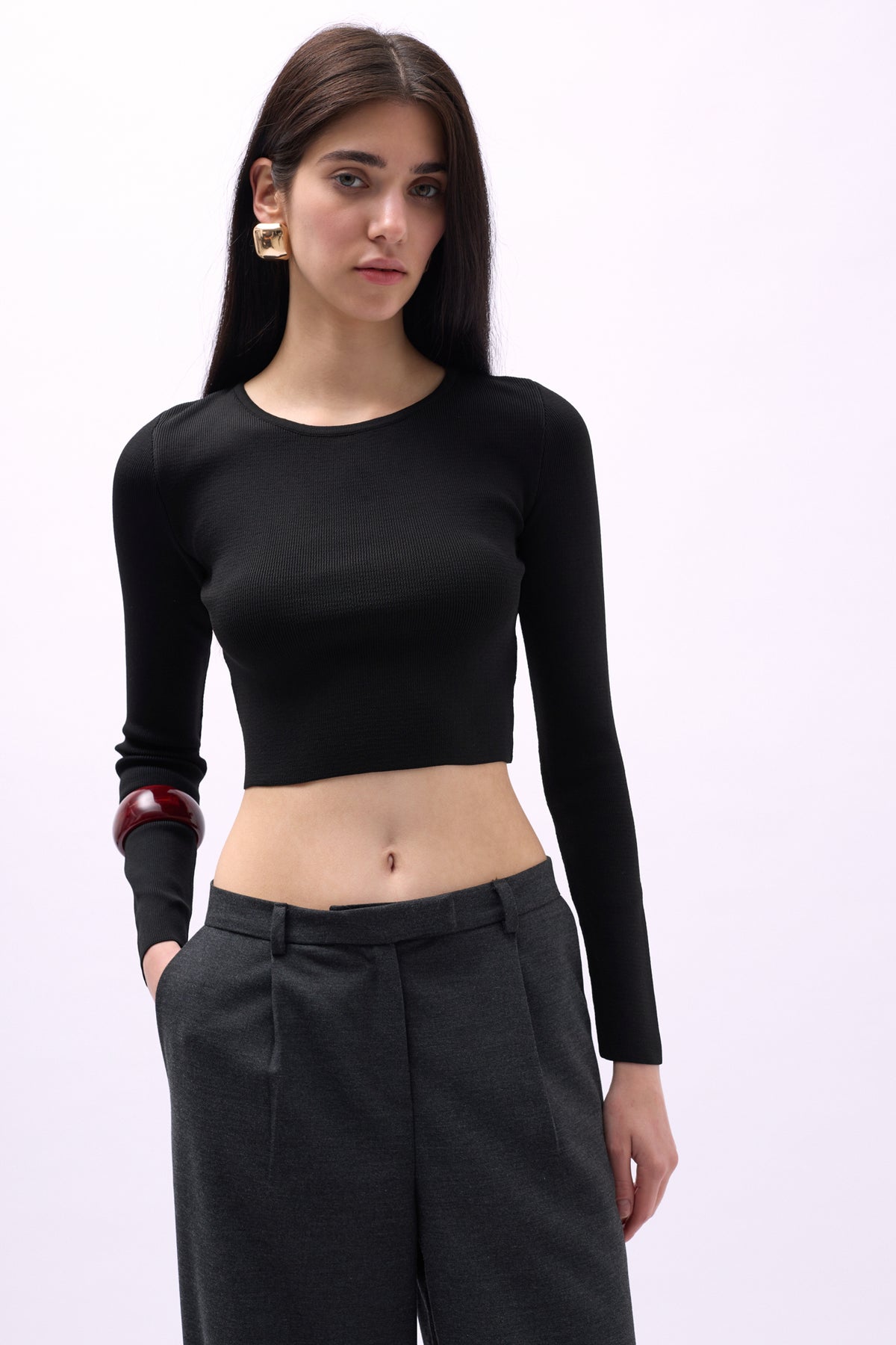 Dar Kalıp, Triko Örgü, Crop Bluz