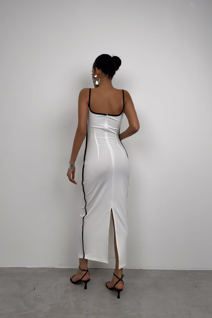 Biye Detay Askılı Kalp Yaka Beyaz Elbise