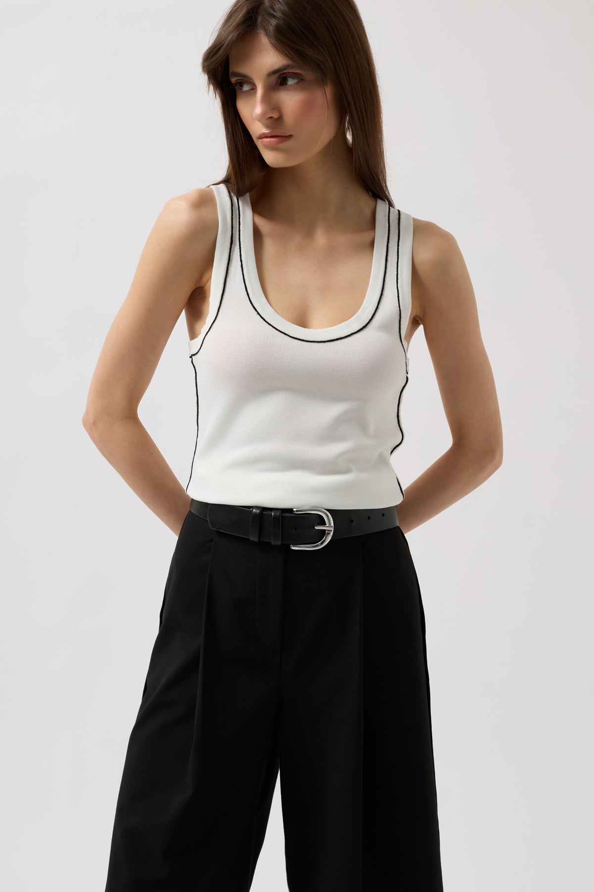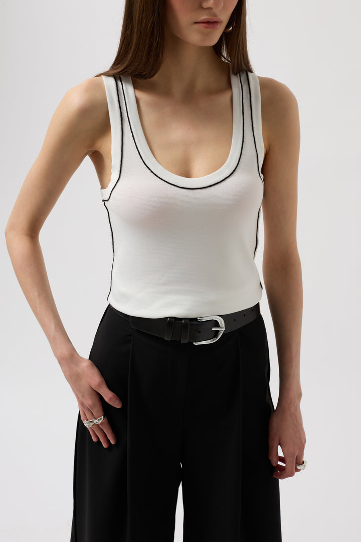 Naylon İpten Triko Örgülü, Dökümlü, Kontrast İp Detaylı, Halter Yaka Bluz