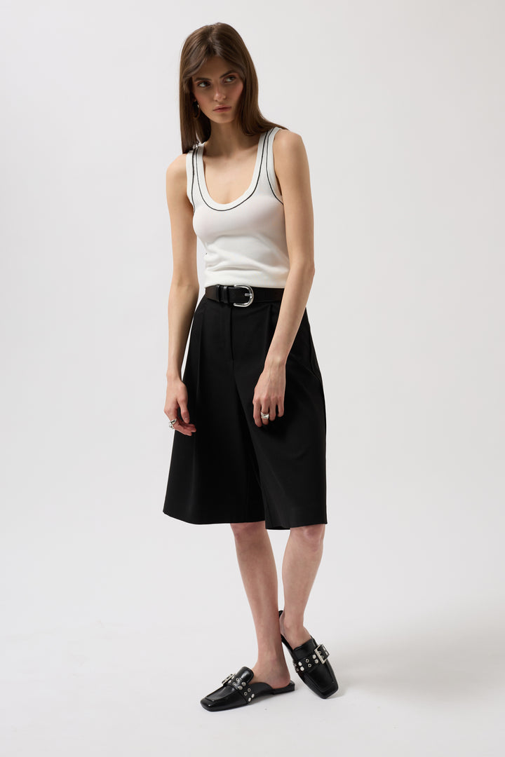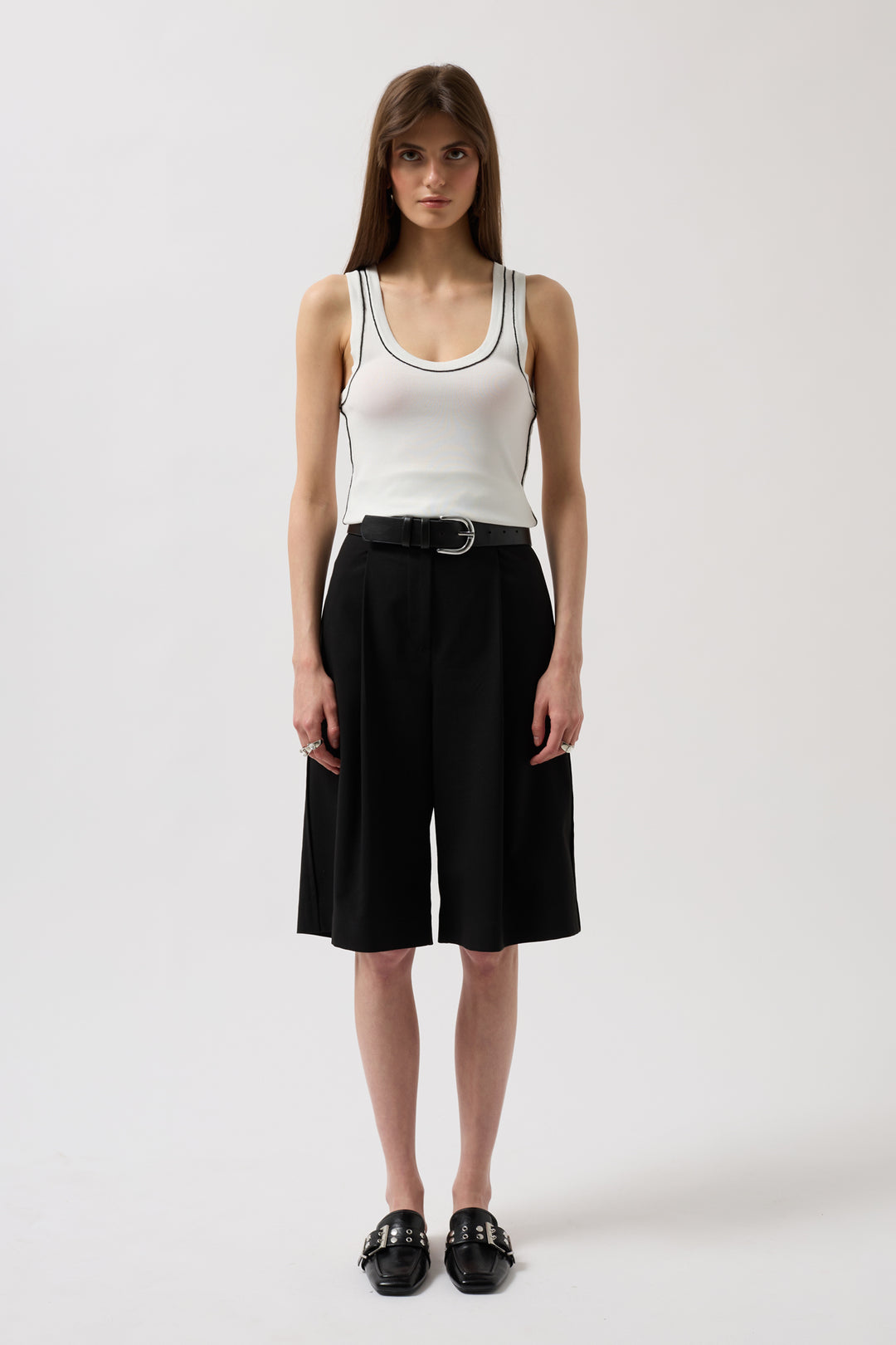 Biye Detay Halter Yaka Beyaz Siyah Bluz