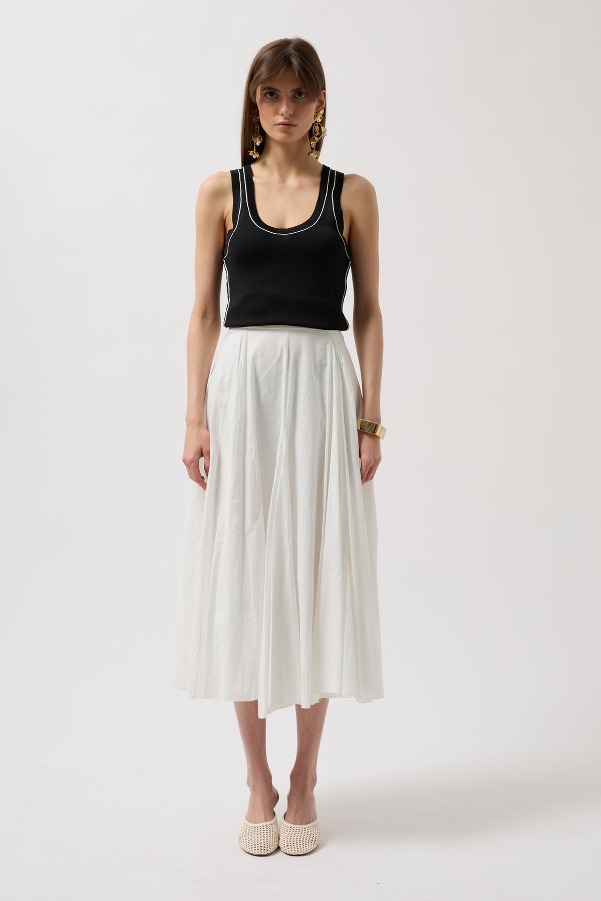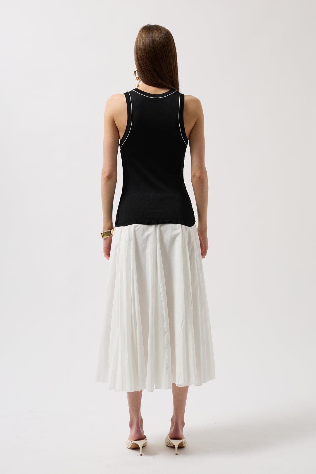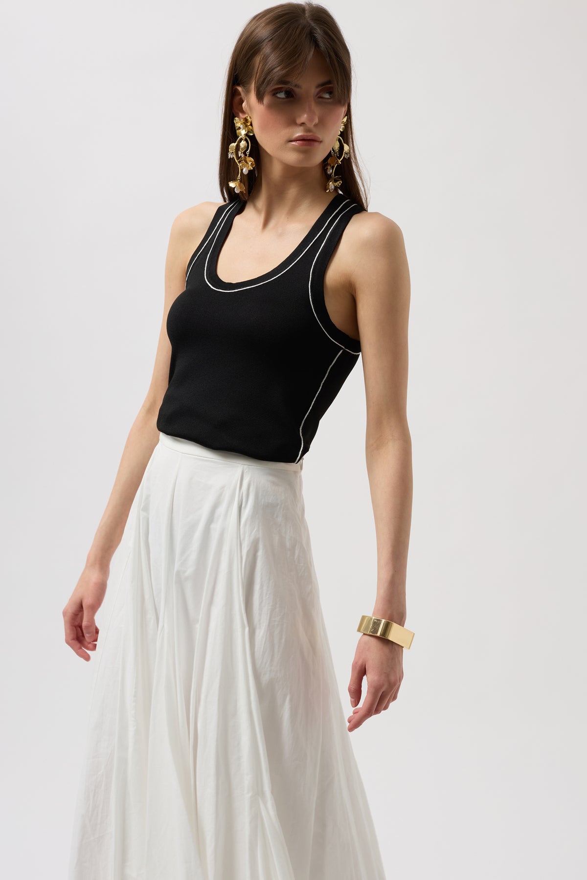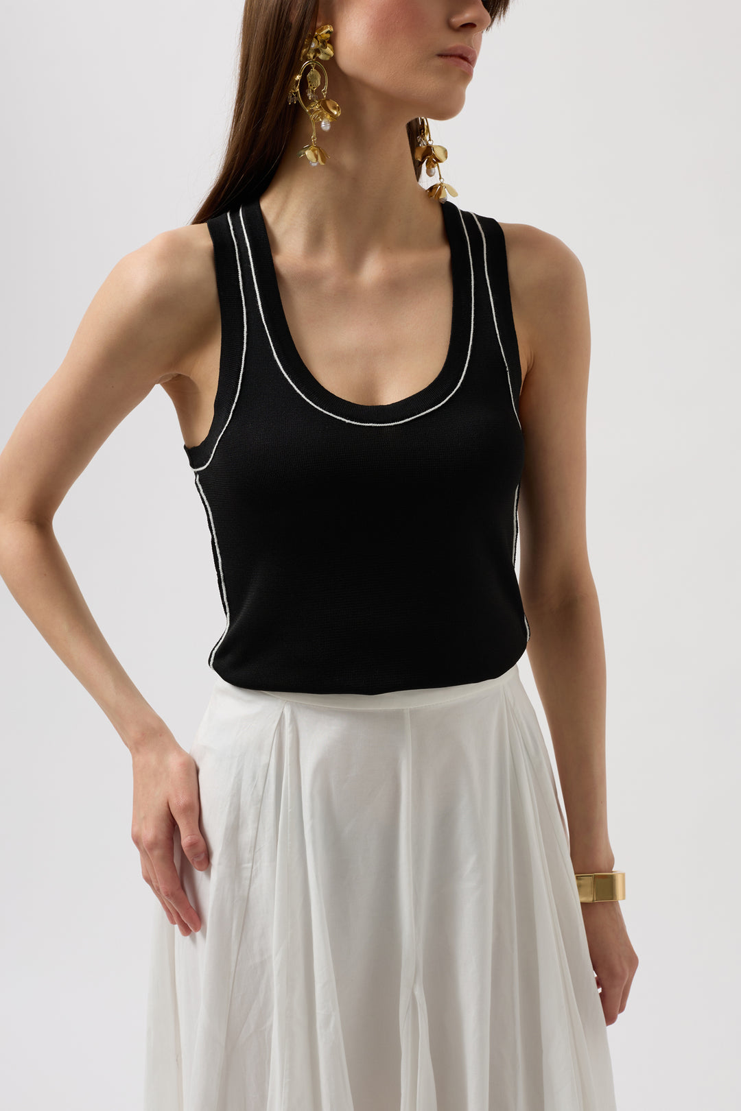 Biye Detay Halter Yaka Siyah Beyaz Bluz