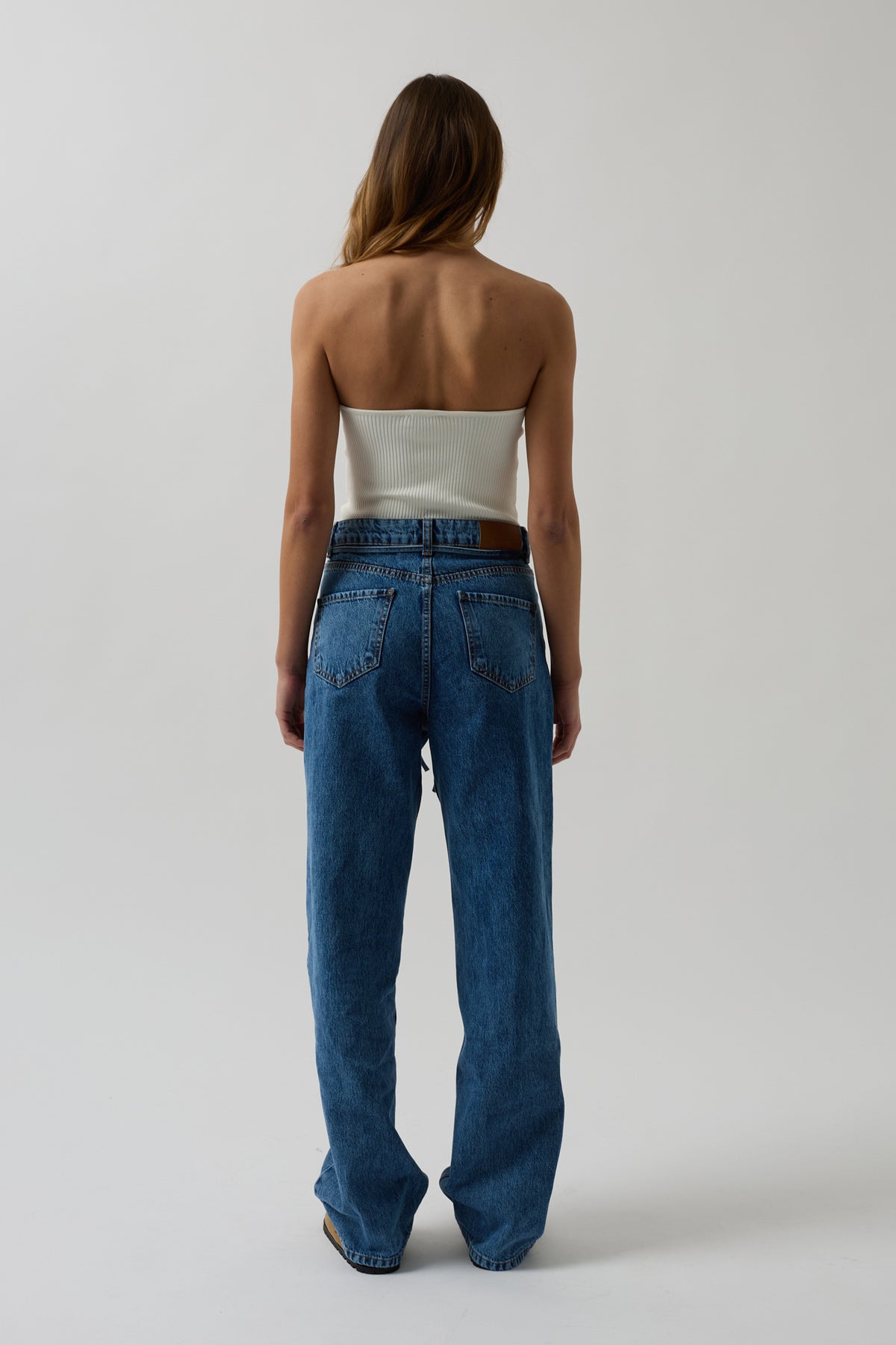 Beli Bağcıklı, 5 Cepli, Fermuarlı Ve Düğmeli, Düz Kesim Denim Pantolon