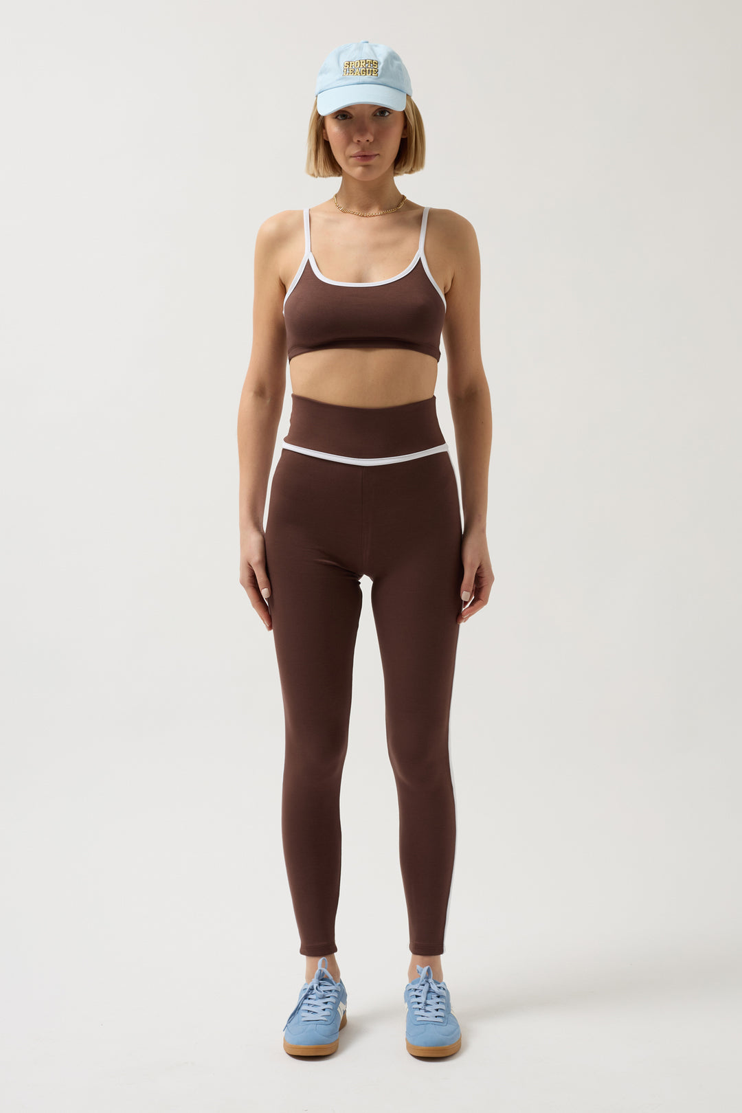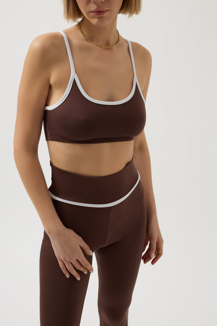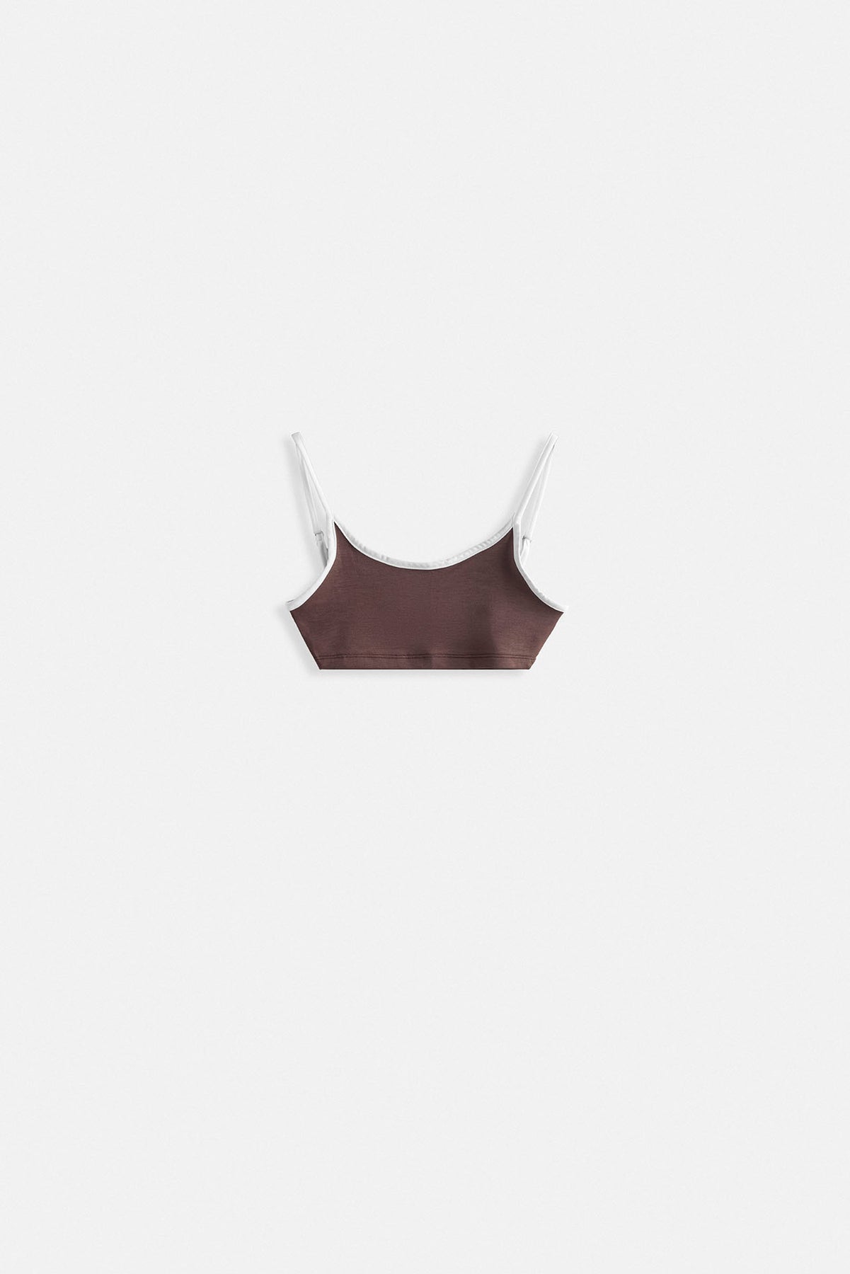 Kontrast Şeritli, İnce Askılı, Likralı Ve Esnek Kumaşlı, Spor Crop Bluz
