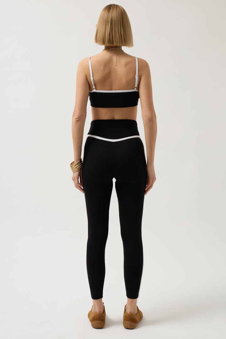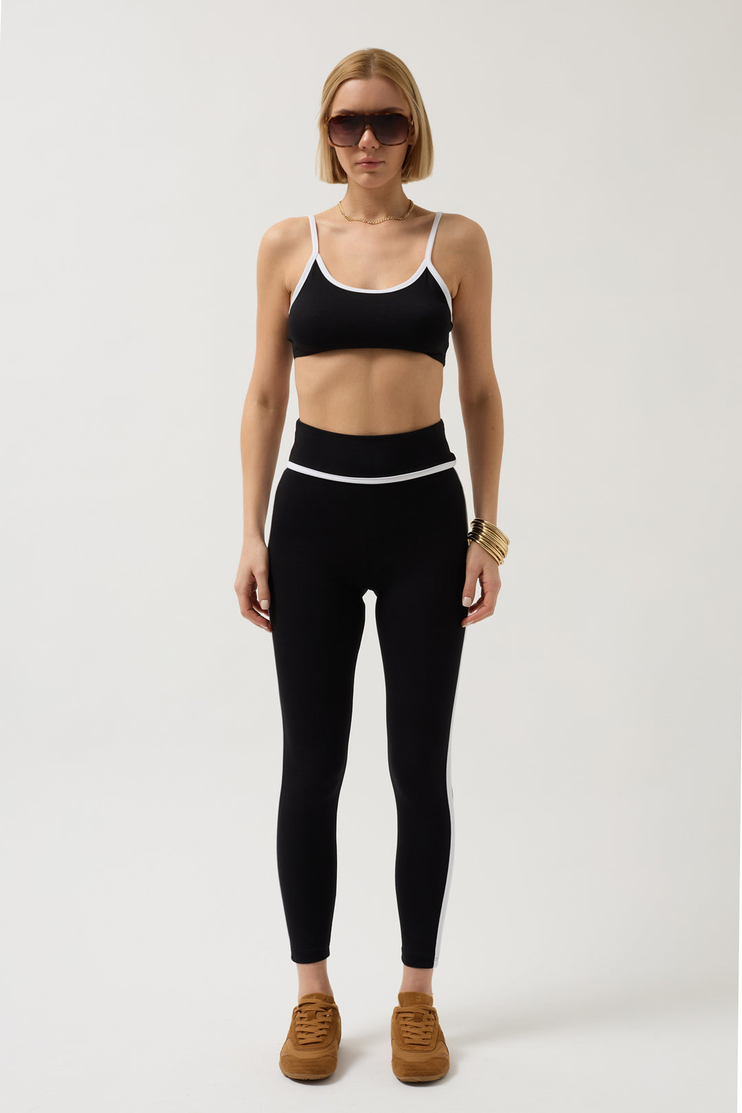 Kontrast Şeritli, İnce Askılı, Likralı Ve Esnek Kumaşlı, Spor Crop Bluz